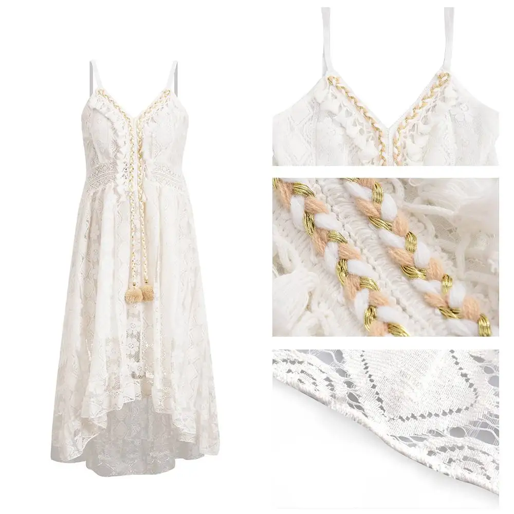 Fabriquée en polyester de haute qualité, cette robe est à la fois élégante et confortable, avec de jolis détails de dentelle, de bandage, de couture et de pompons.