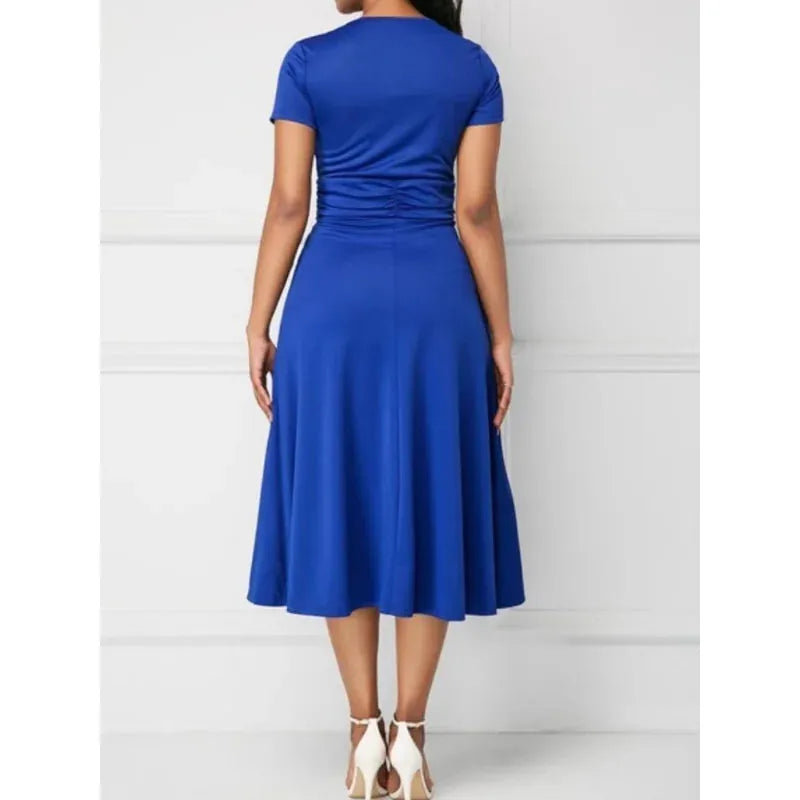 Parfaite pour les soirées, cette robe midi sexy est dotée d'un design ruché flatteur à la taille haute qui accentue joliment vos courbes.