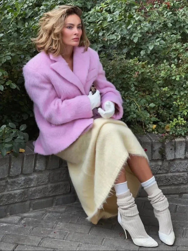 Idéal pour des occasions spéciales ou pour apporter une touche chic à votre look quotidien, ce manteau allie confort et raffinement. Sa coupe structurée et sa finition luxueuse en font un incontournable pour celles qui recherchent à la fois style et douceur. Parfait pour les soirées ou pour un look sophistiqué en journée.