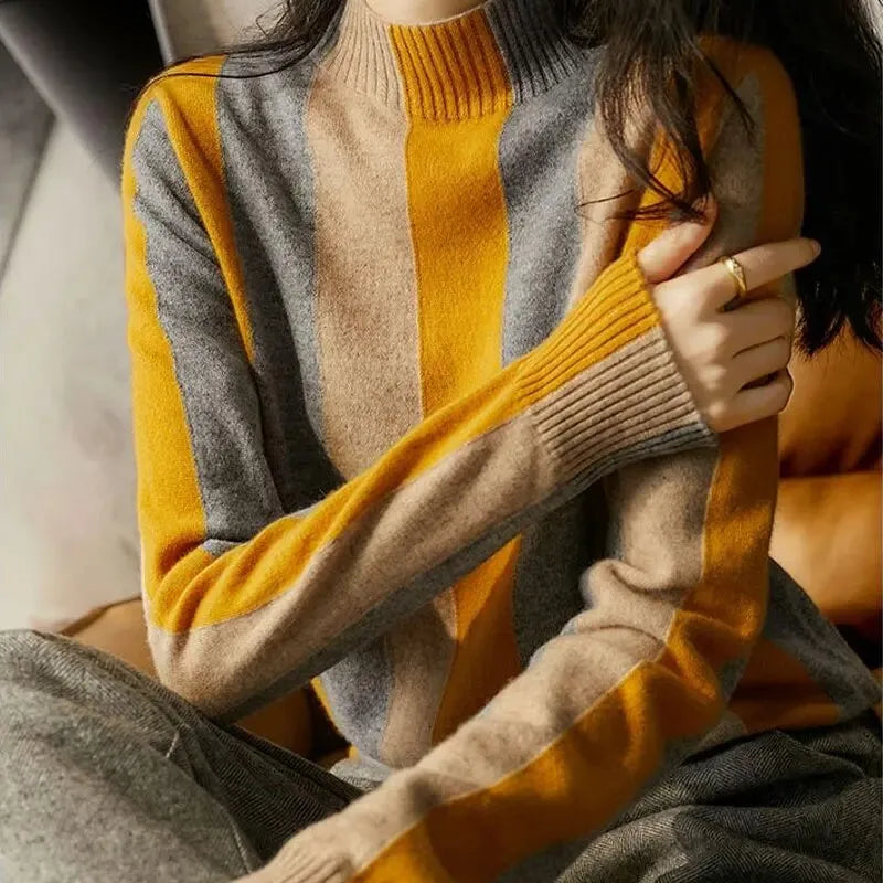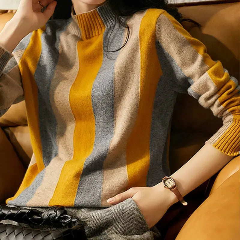 Élodie Lavin | Pull Rayé Vintage Avec Encolure Mi-Haute