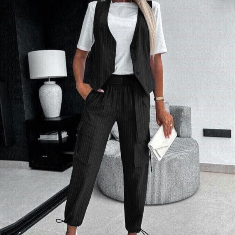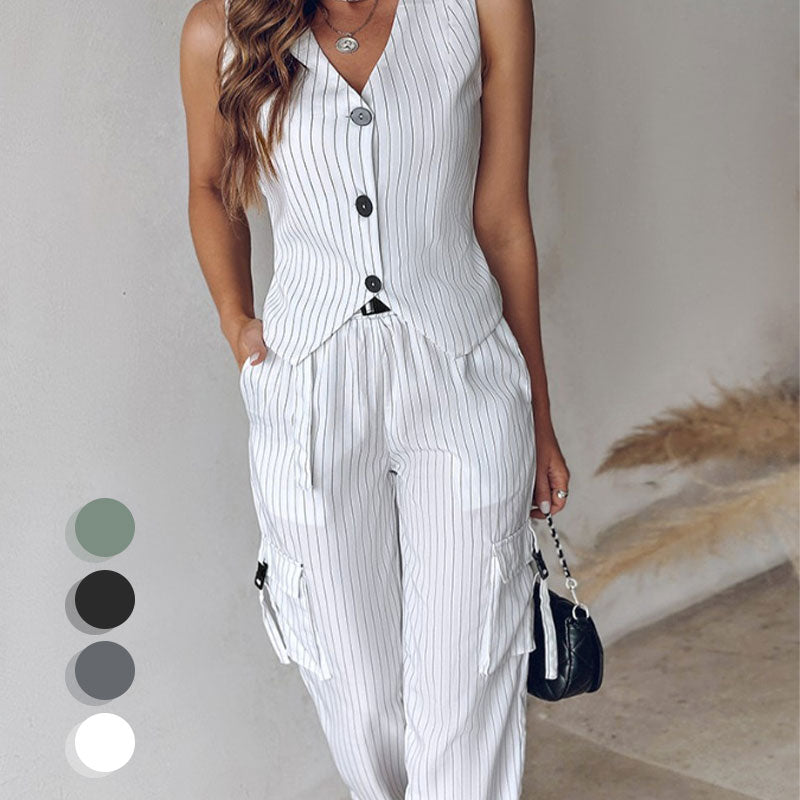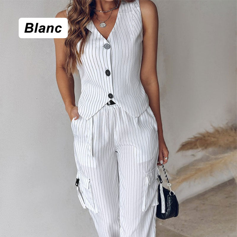 Ensemble 2 Pièces - Gilet avec Pantalon Imprimé Rayé pour Femmes
