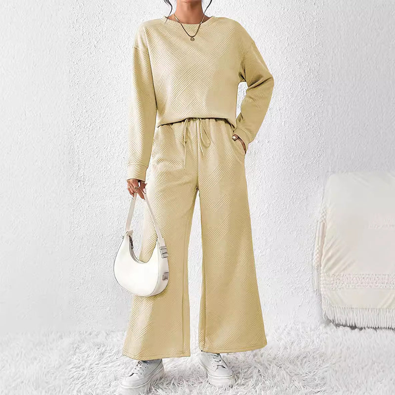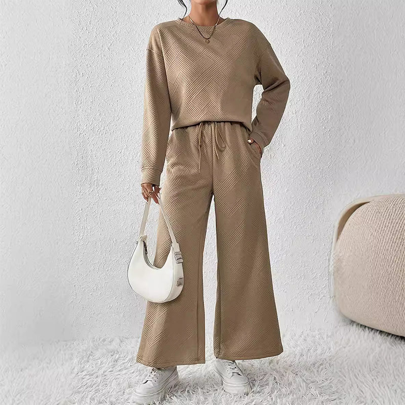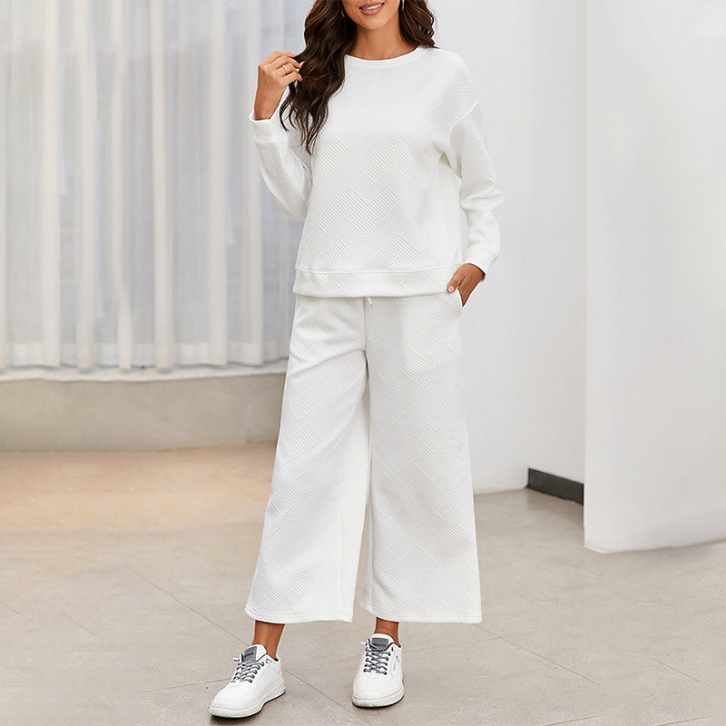 Ensemble 2 pièces femme - haut texturé et pantalon large