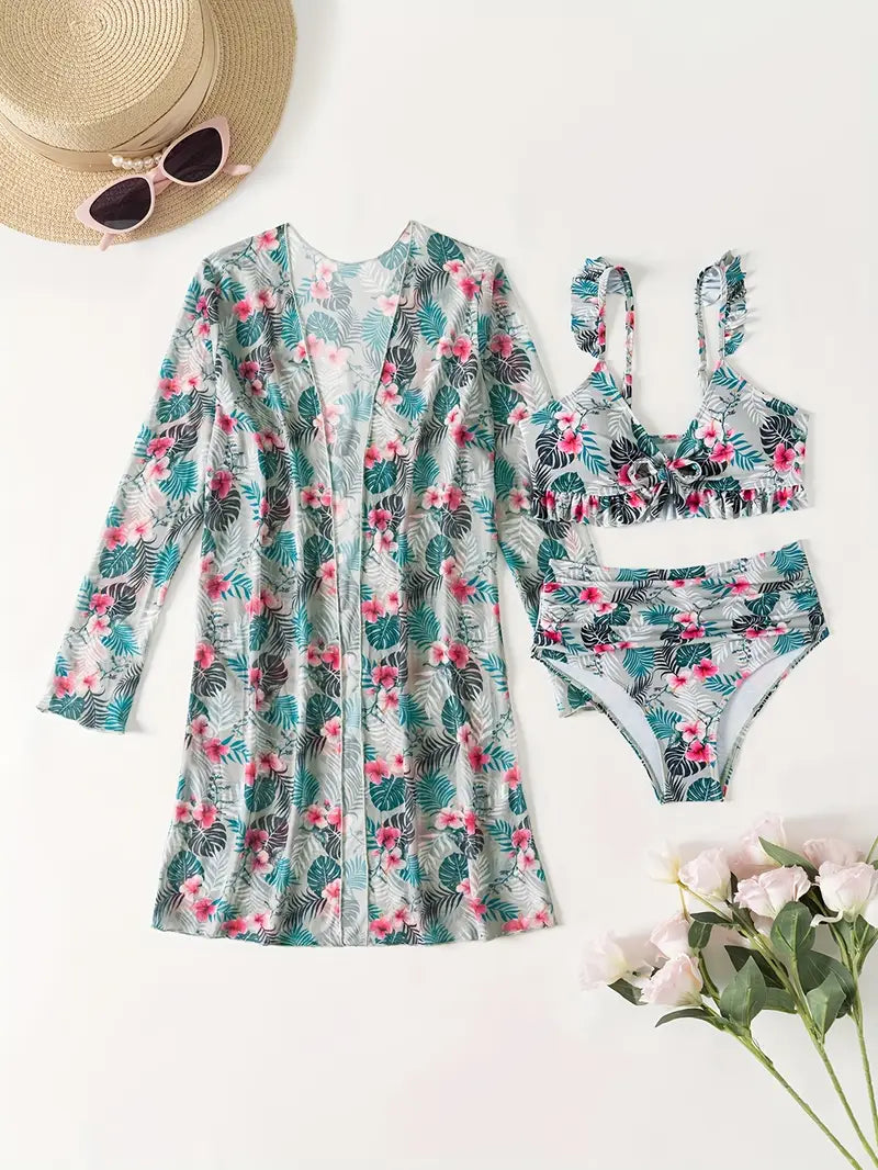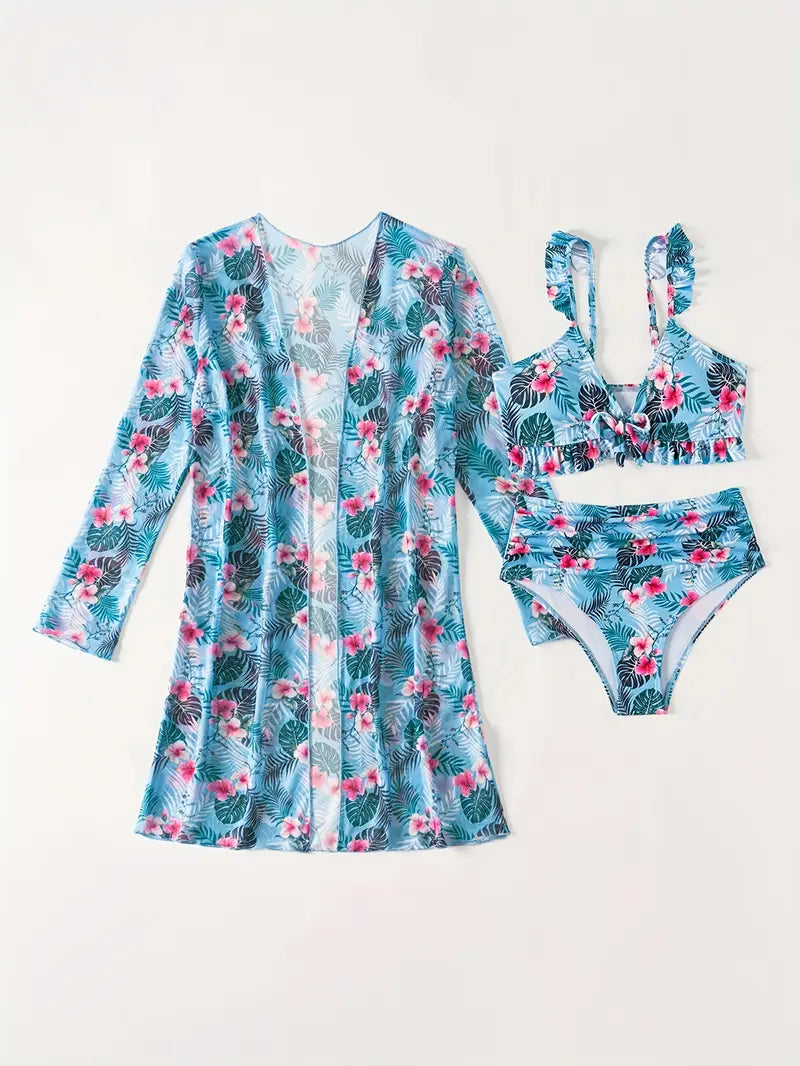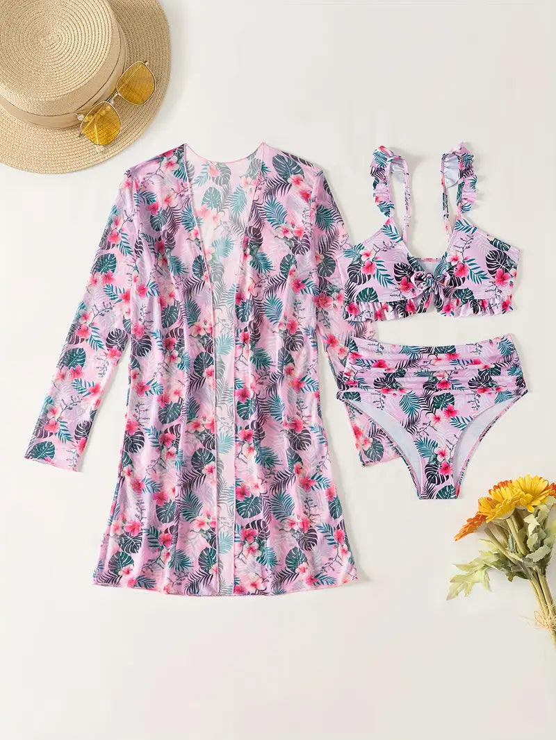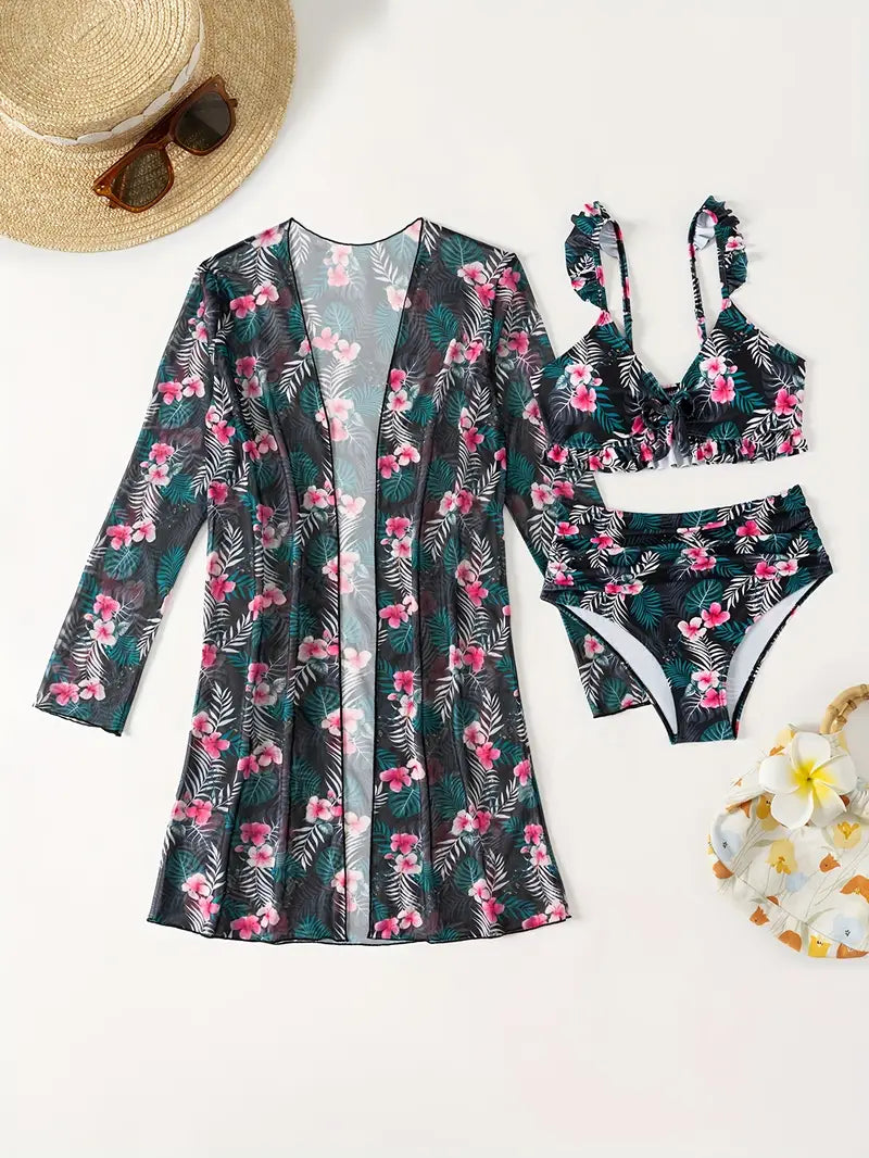 Cet ensemble trois pièces est conçu pour que vous vous sentiez à l'aise et confiante tout en vous démarquant avec un look unique et flatteur. Idéal pour la plage, la piscine ou vos moments de détente au soleil.