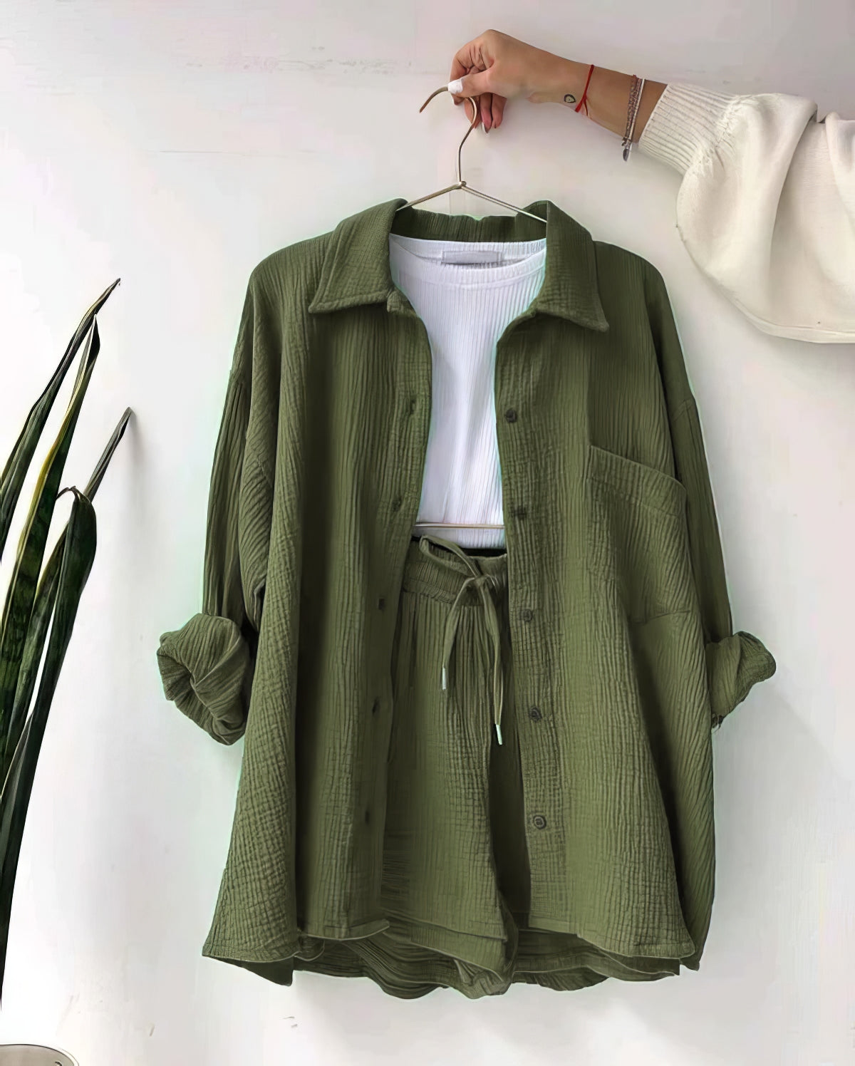 Cet ensemble chemise et short en polyester pour femme allie style et confort.