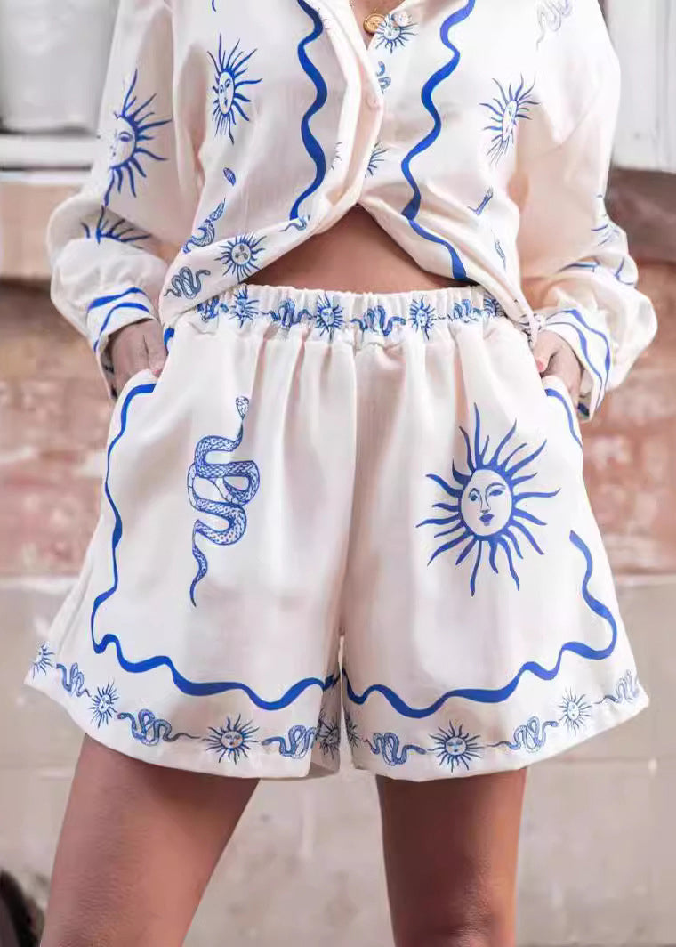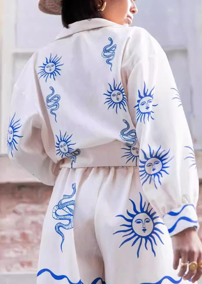 Ensemble décontracté blanc en lin deux pièces avec col Claudine pour le printemps
