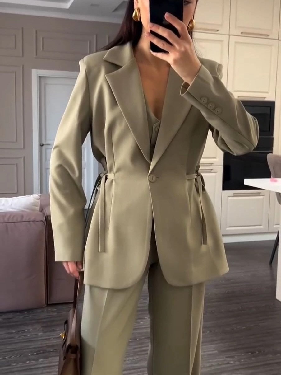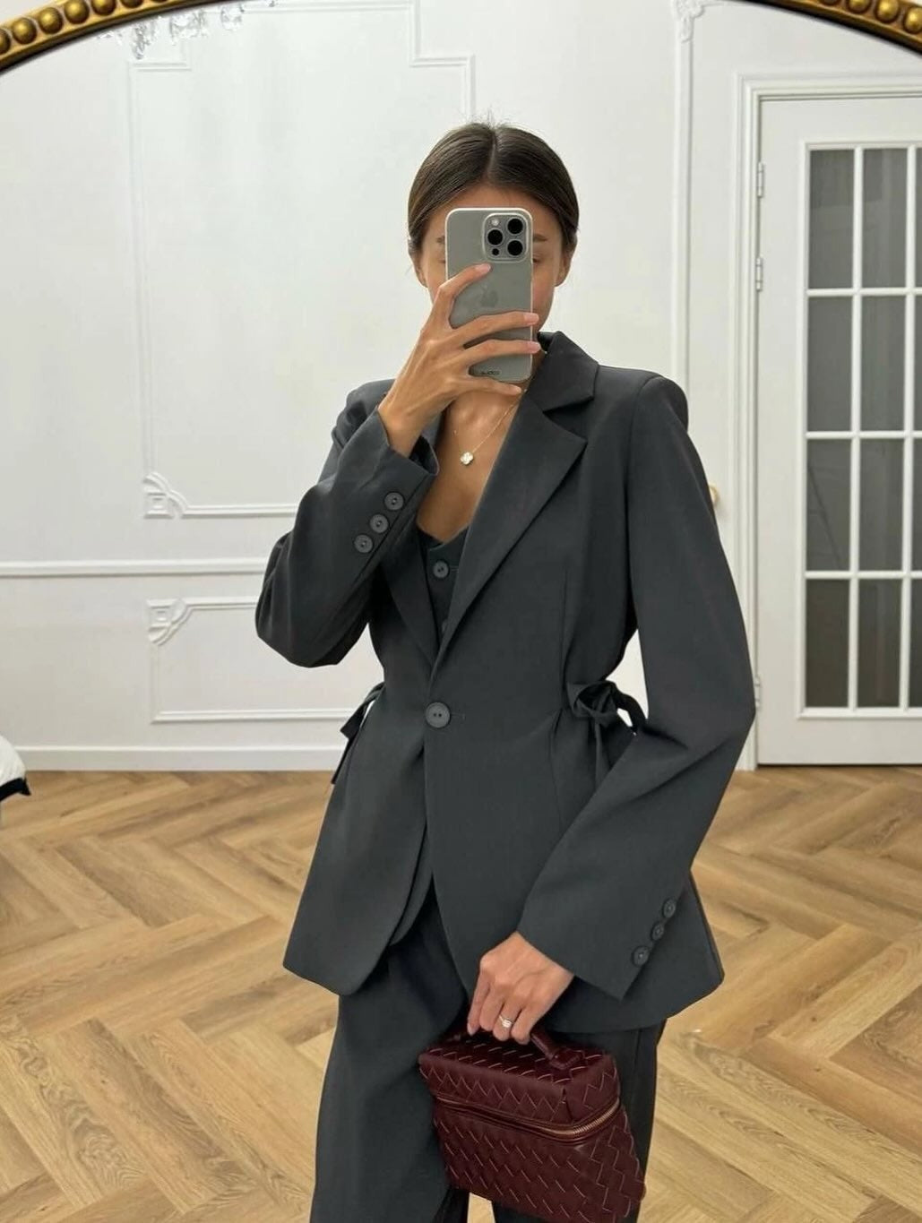 Cet ensemble deux pièces blazer et pantalon réunit élégance et praticité pour un style raffiné au quotidien. Chic et confortable, il se porte aussi bien au bureau qu’en soirée pour une allure professionnelle et moderne. Un indispensable pour un dressing sophistiqué et polyvalent.