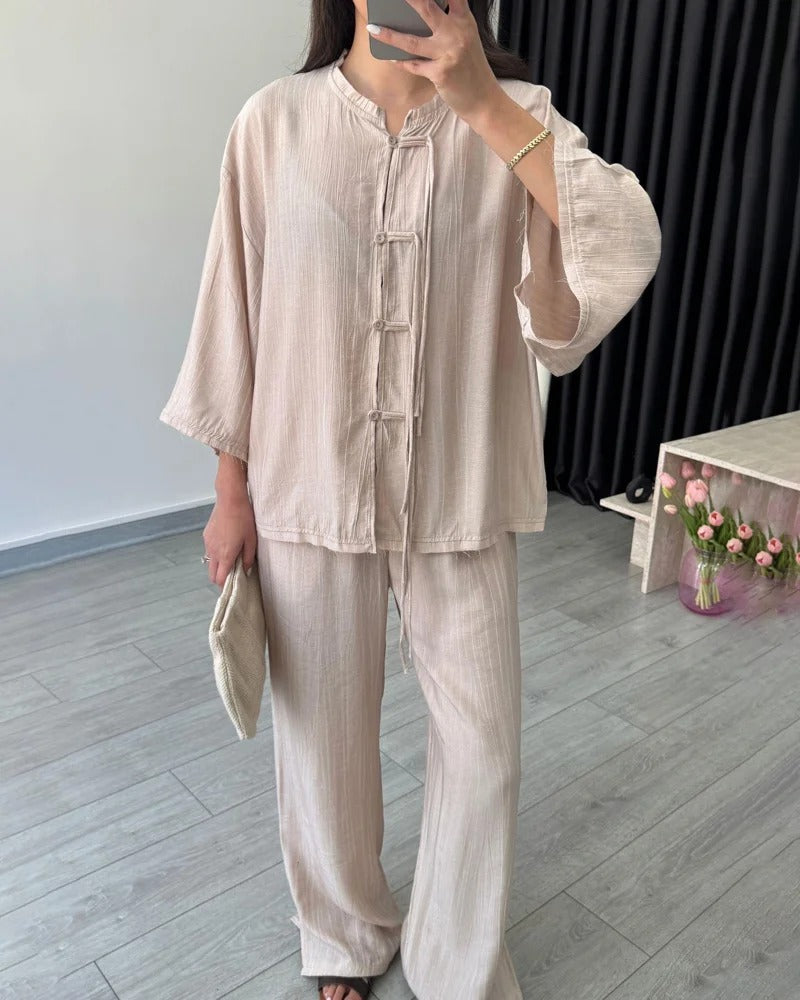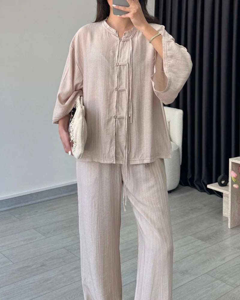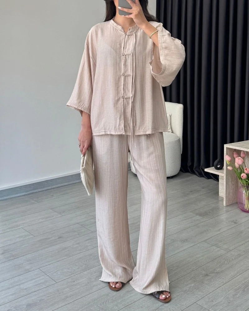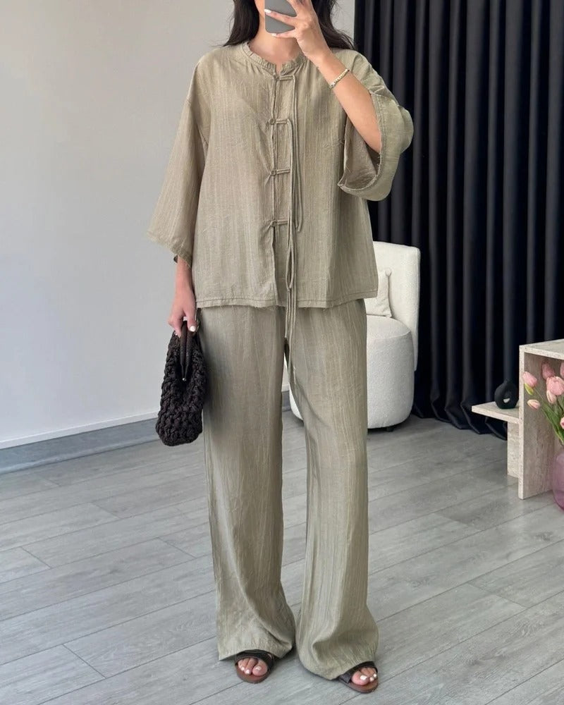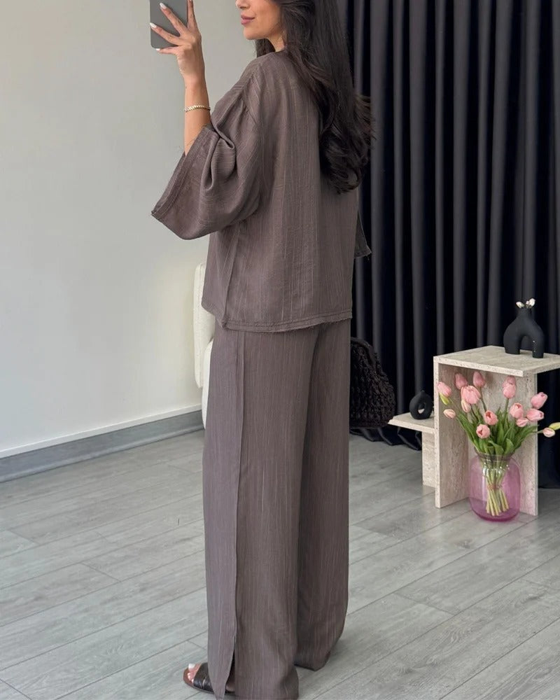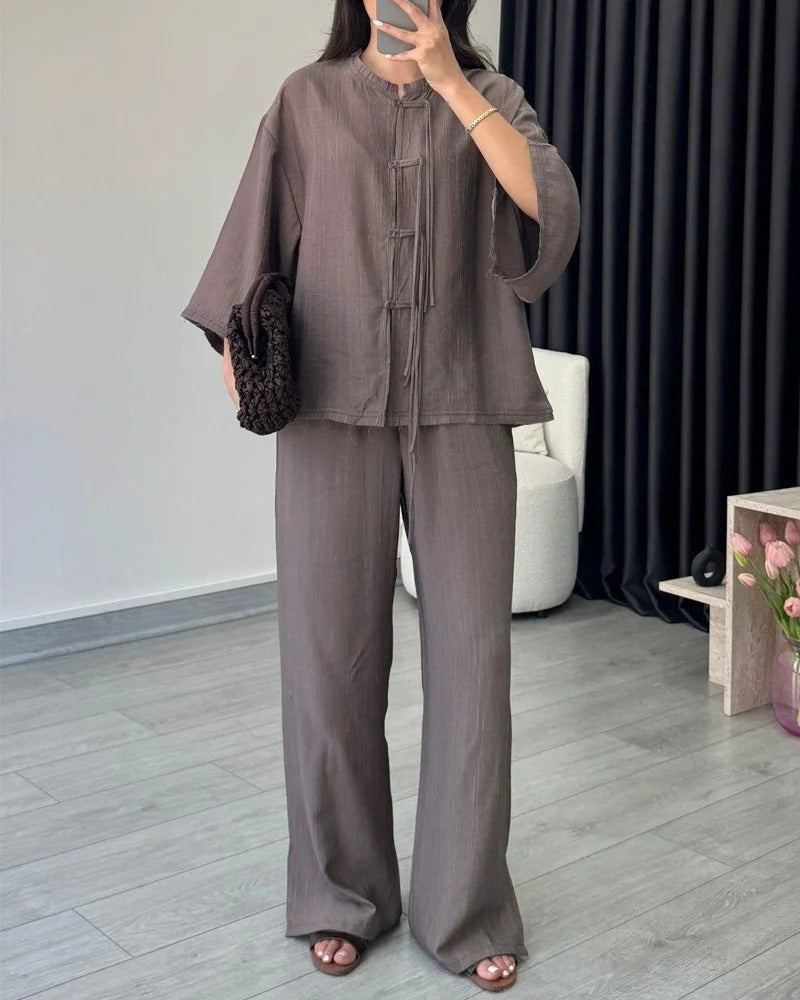 Ensemble deux pièces chemise boutonnée et pantalon tendance