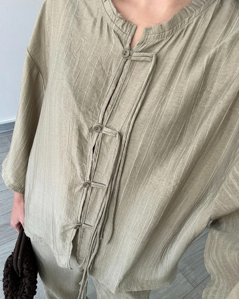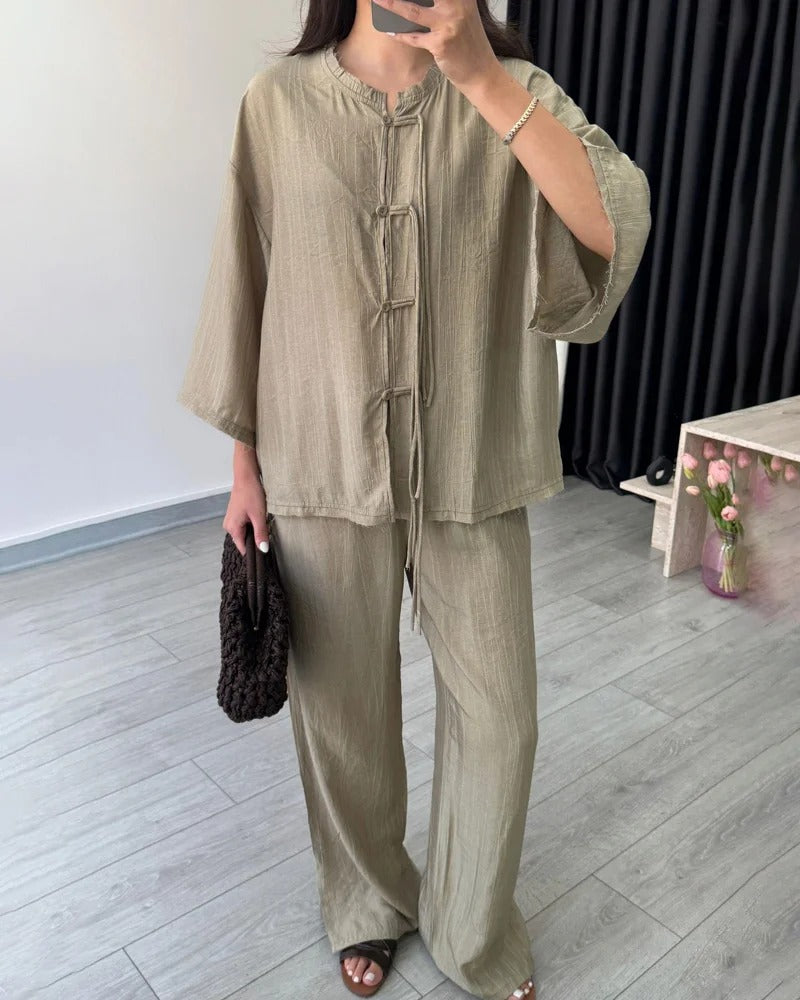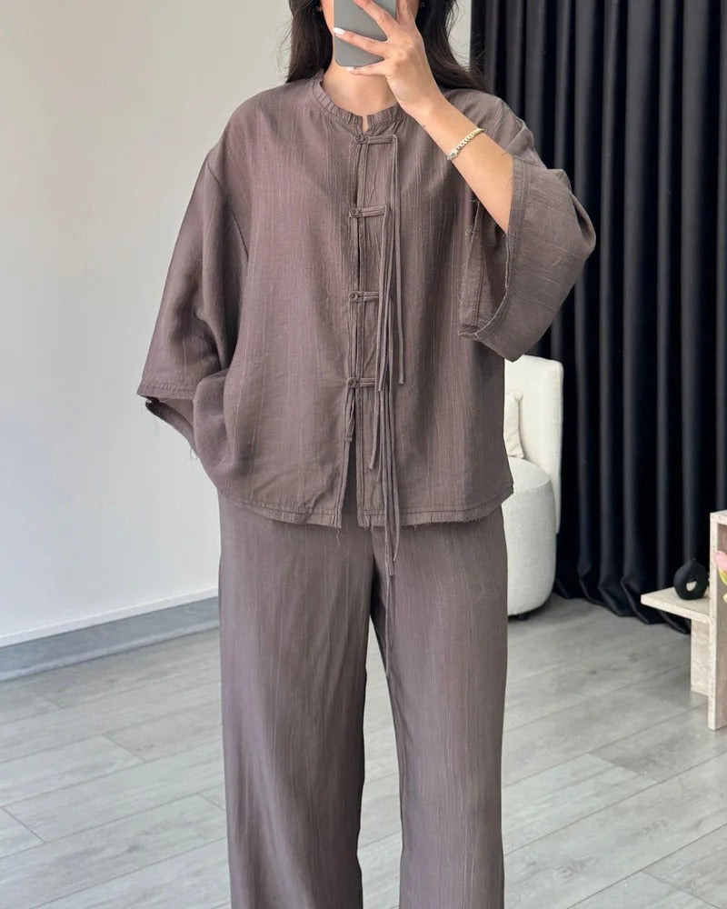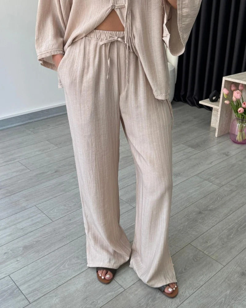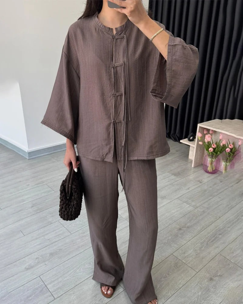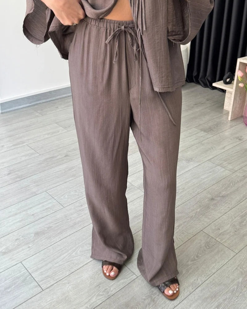 Ensemble deux pièces chemise boutonnée et pantalon tendance