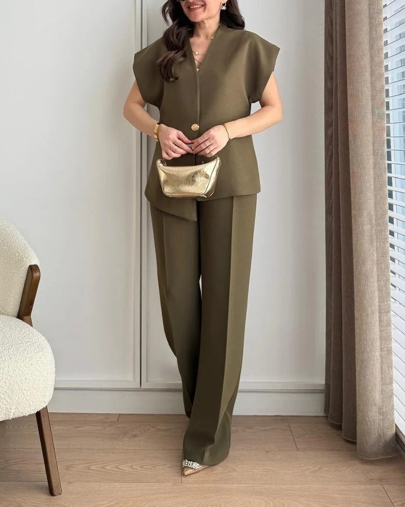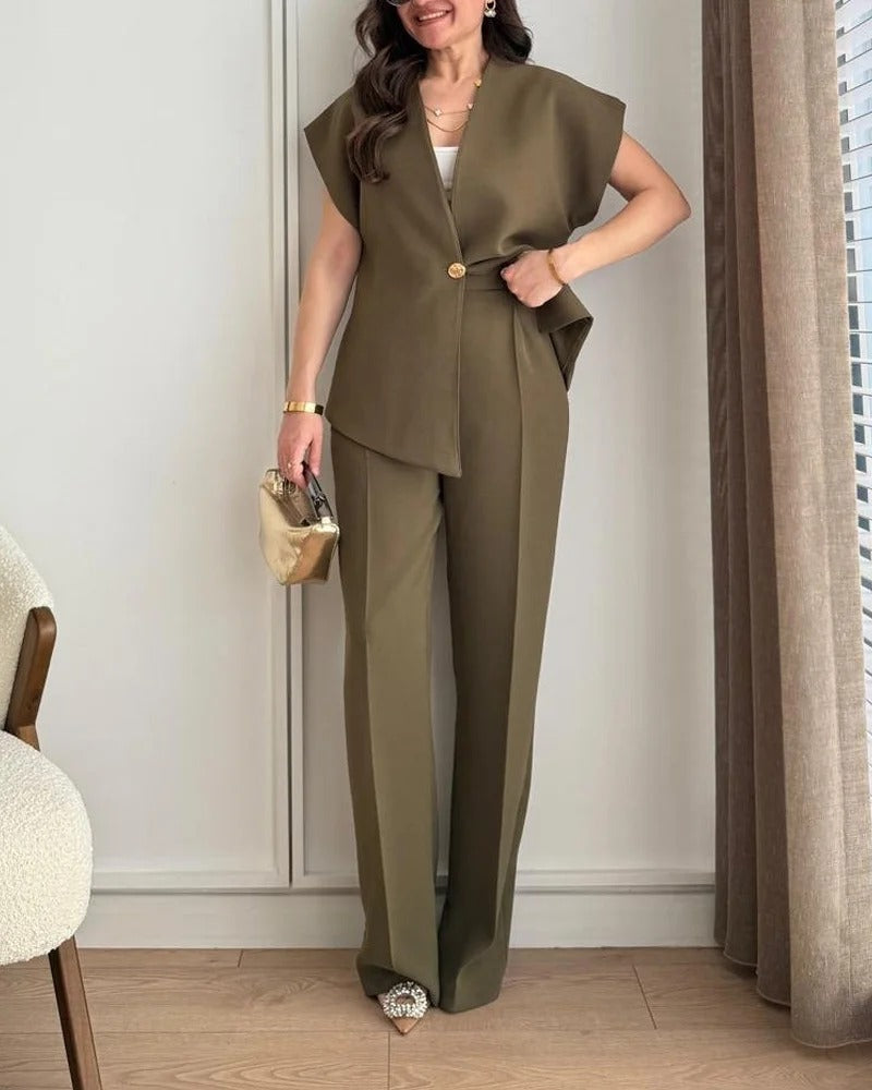 Affirmez votre style avec cet ensemble deux pièces à coupe asymétrique, alliant originalité et élégance. Parfait pour une allure moderne et confortable au quotidien comme en sortie.