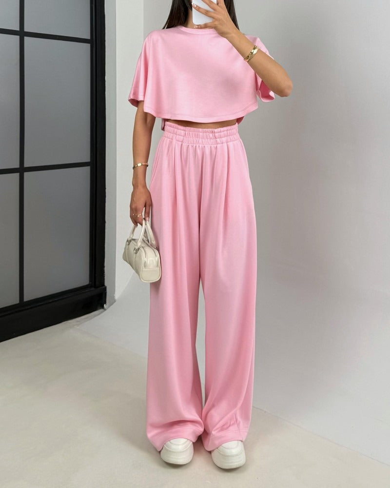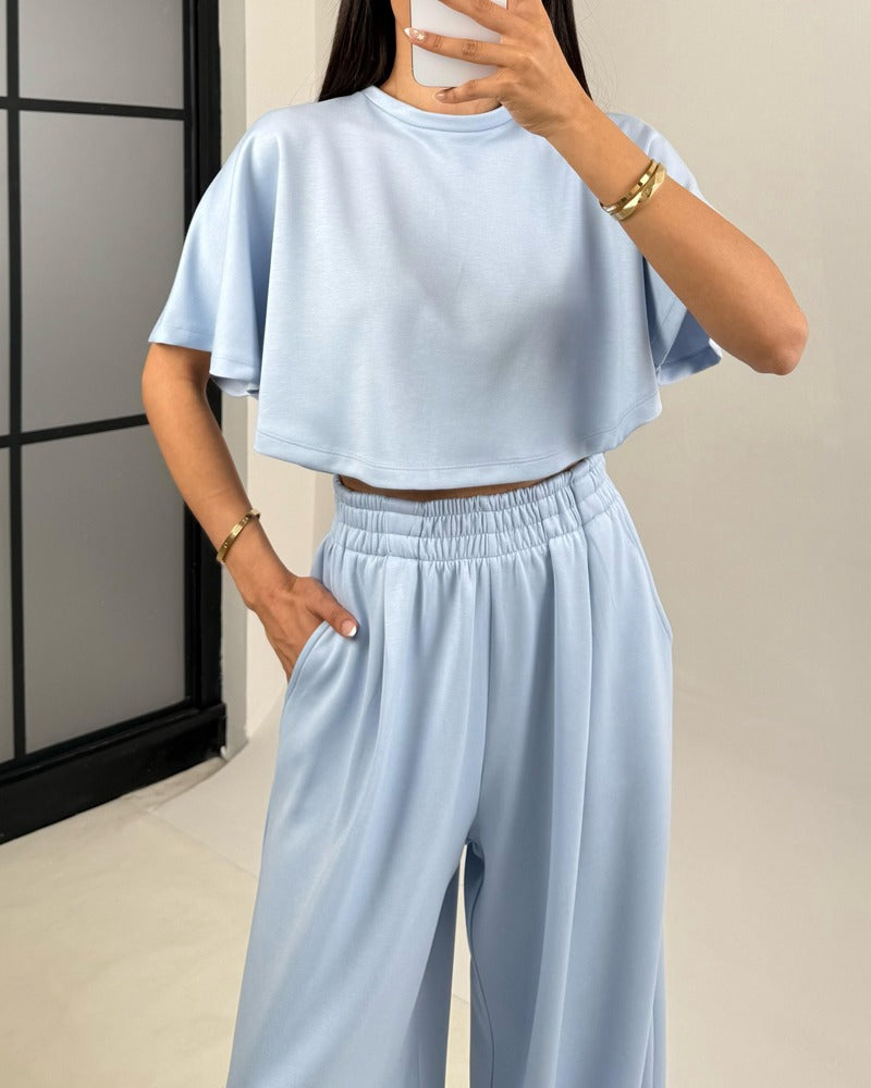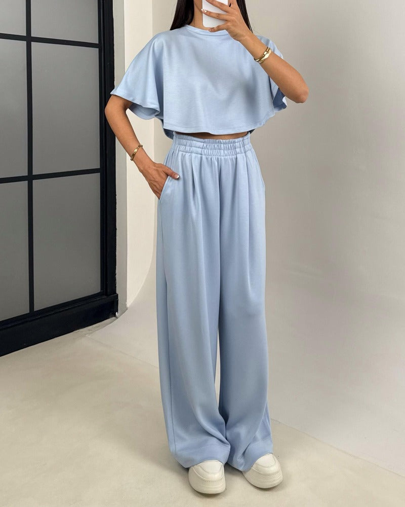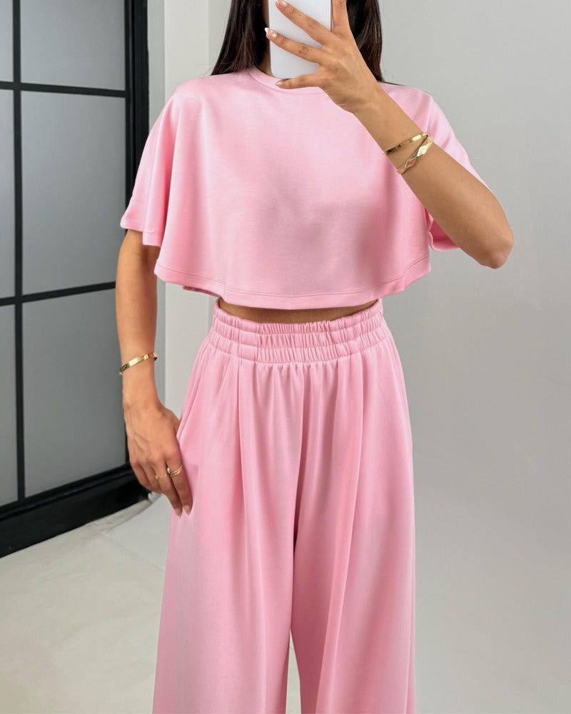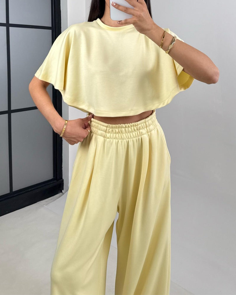 Ensemble deux pièces t-shirt et pantalon à col châle tendance