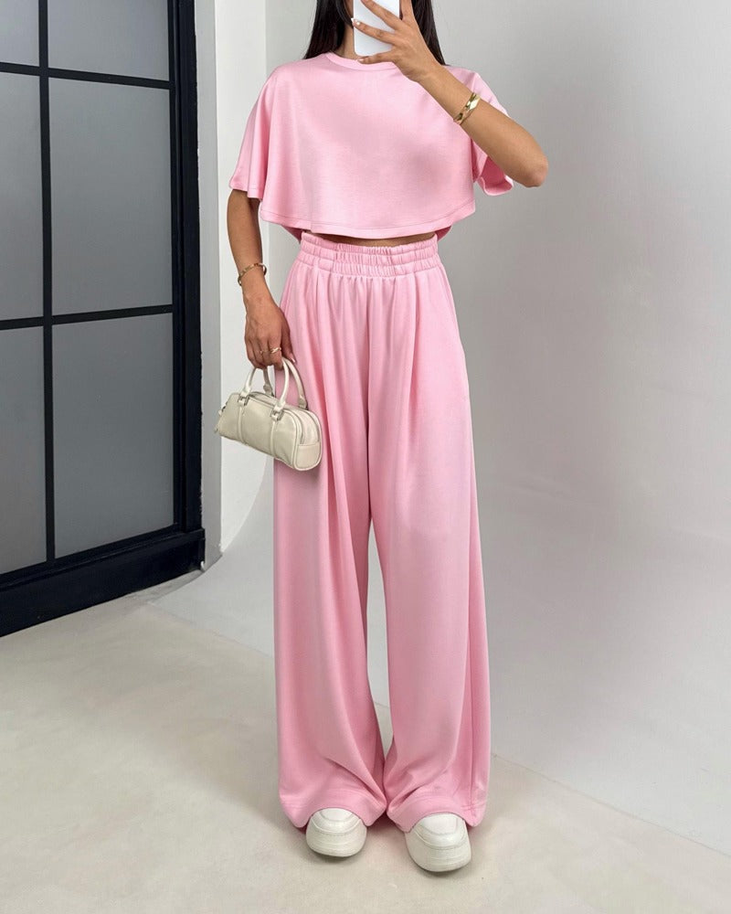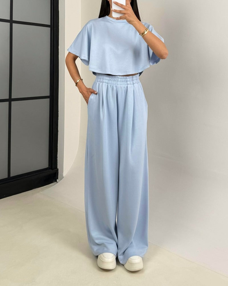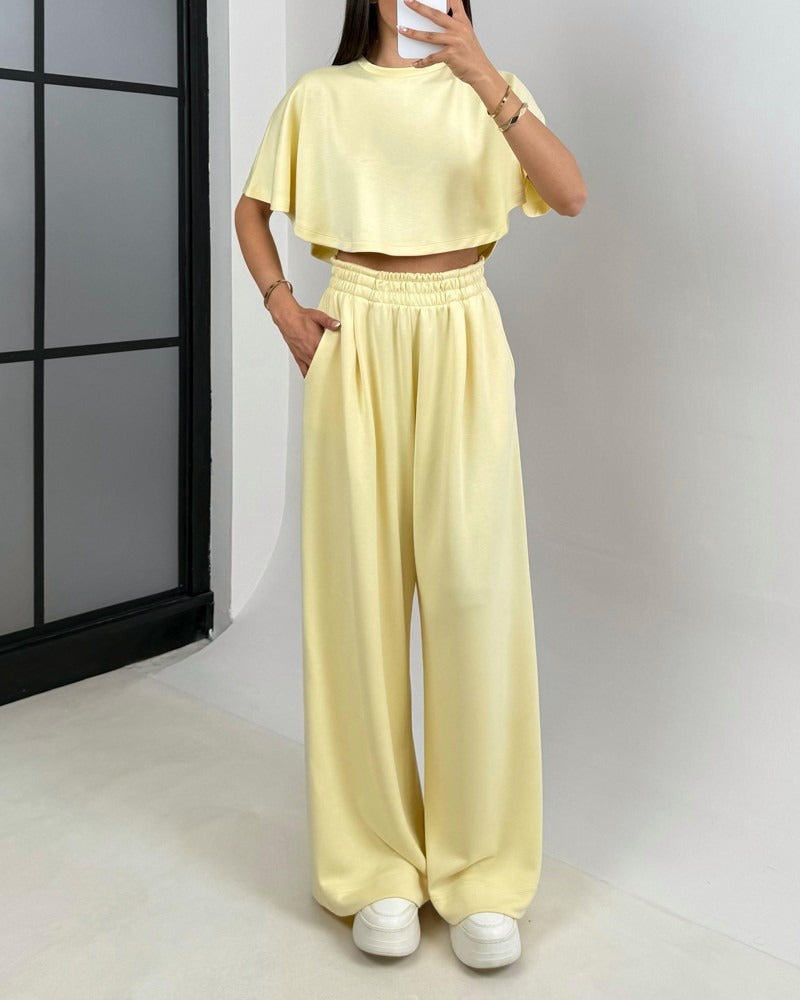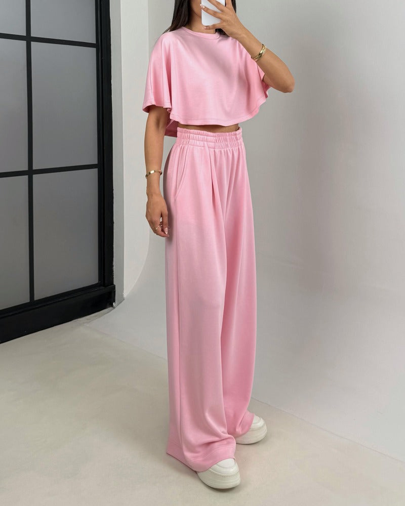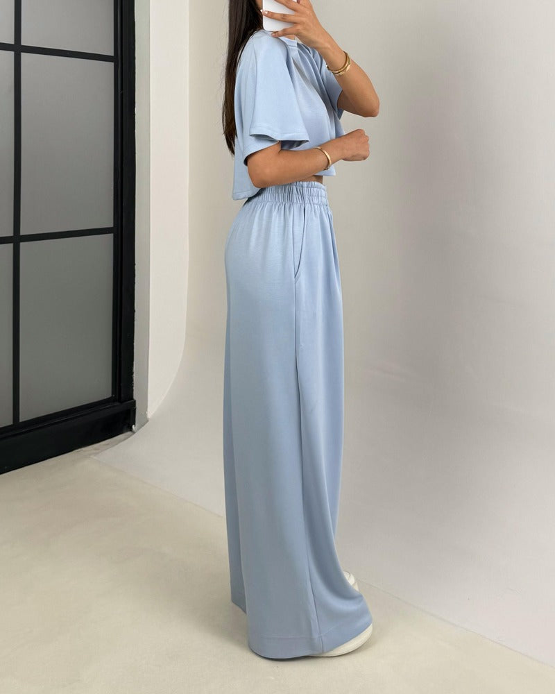Ensemble deux pièces t-shirt et pantalon à col châle tendance