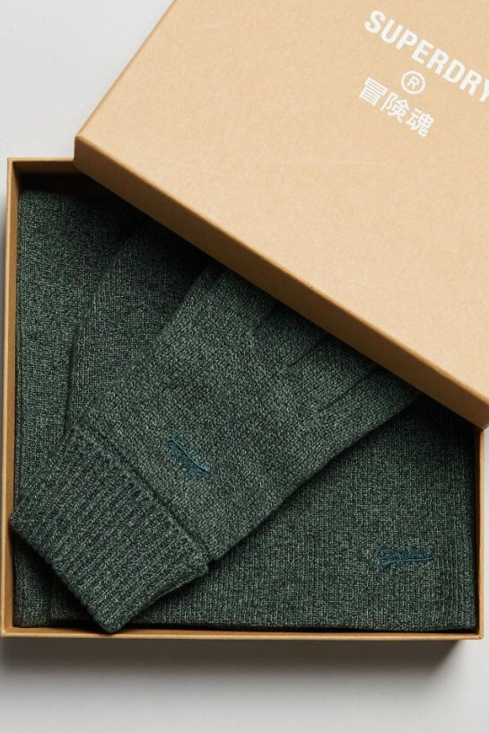 Ensemble écharpe + bonnet + gants kaki, gris et noir SUPERDRY