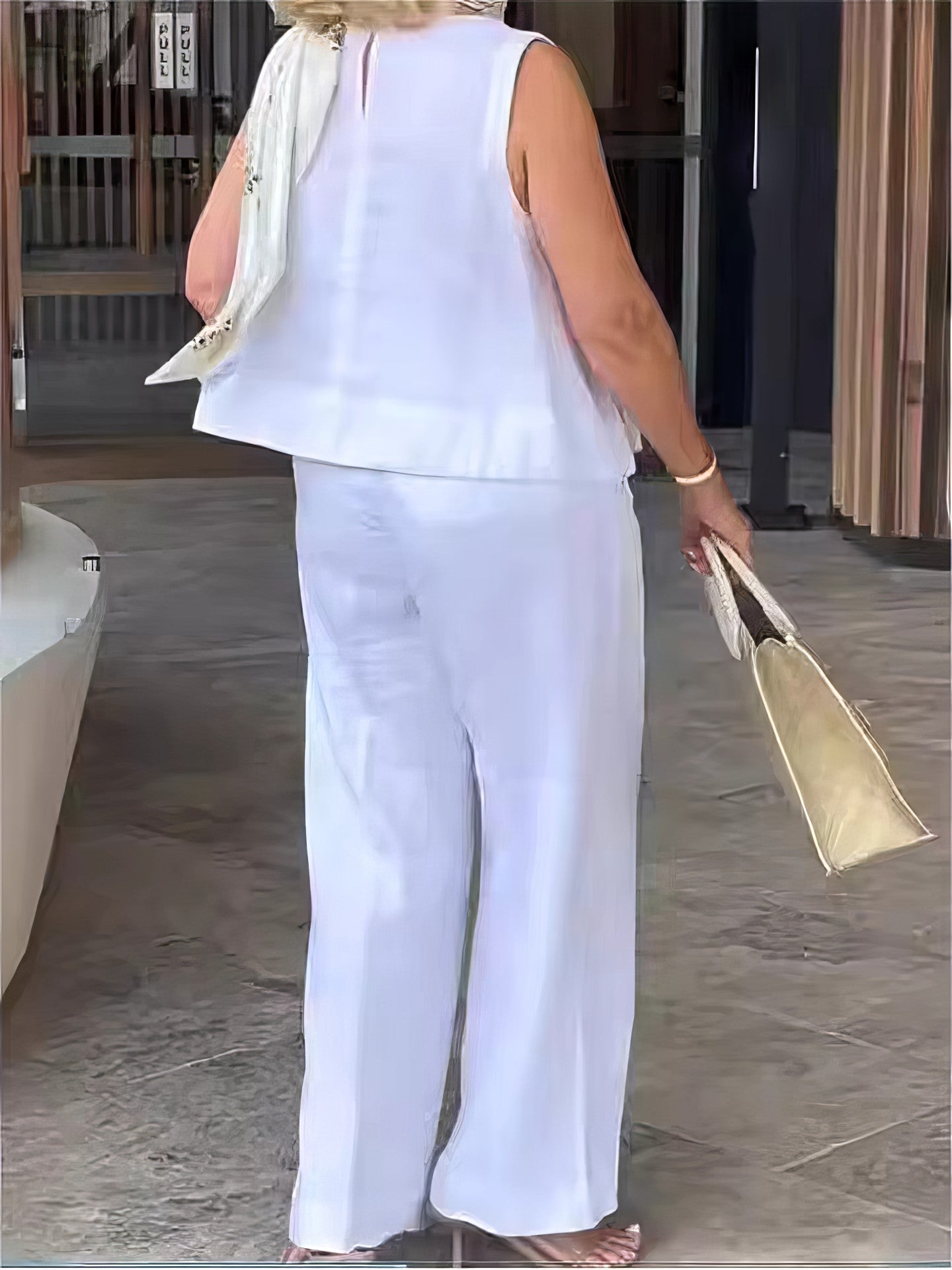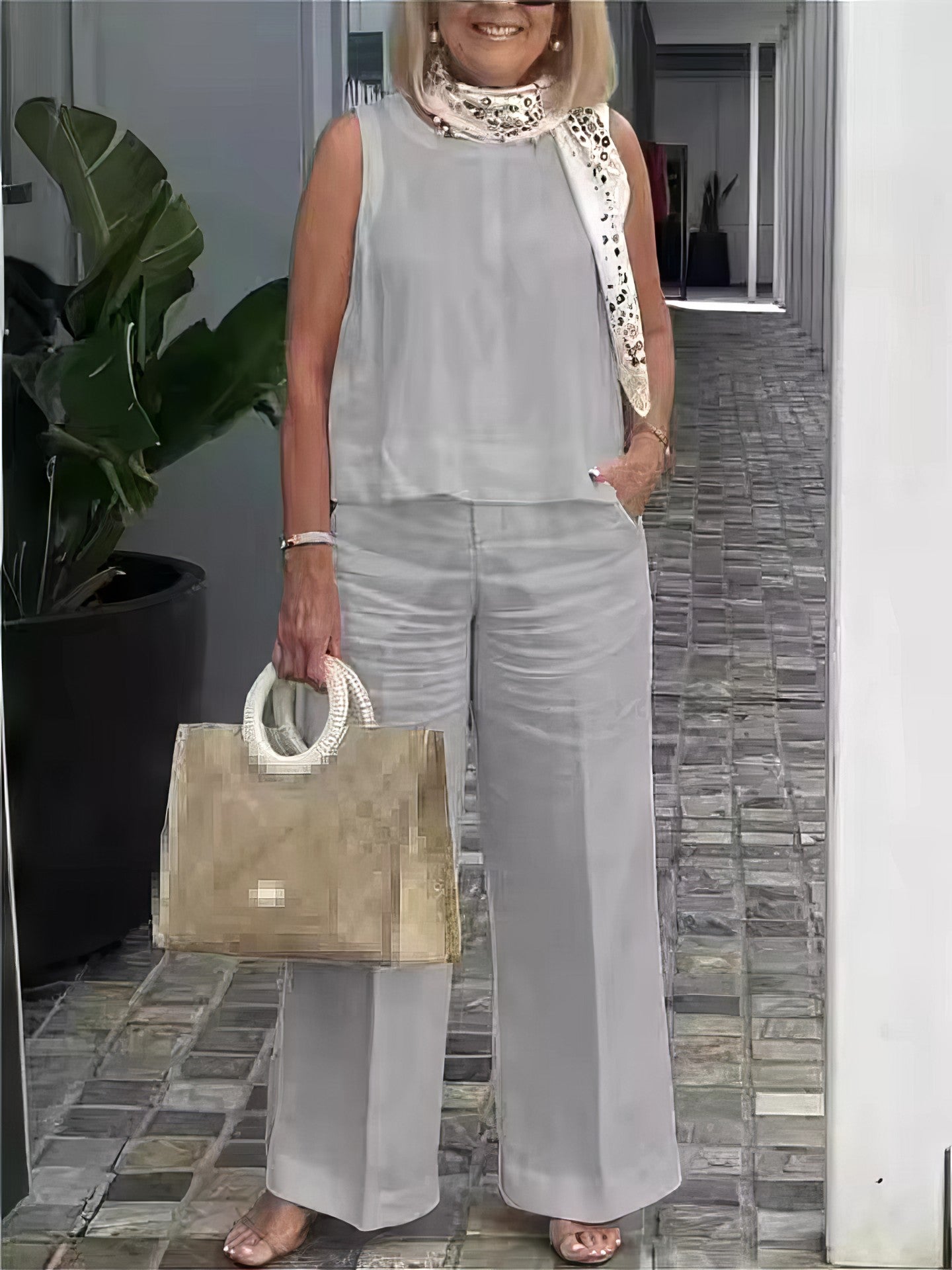 Ensemble en lin et coton pour femme, blouse sans manches et pantalon ample