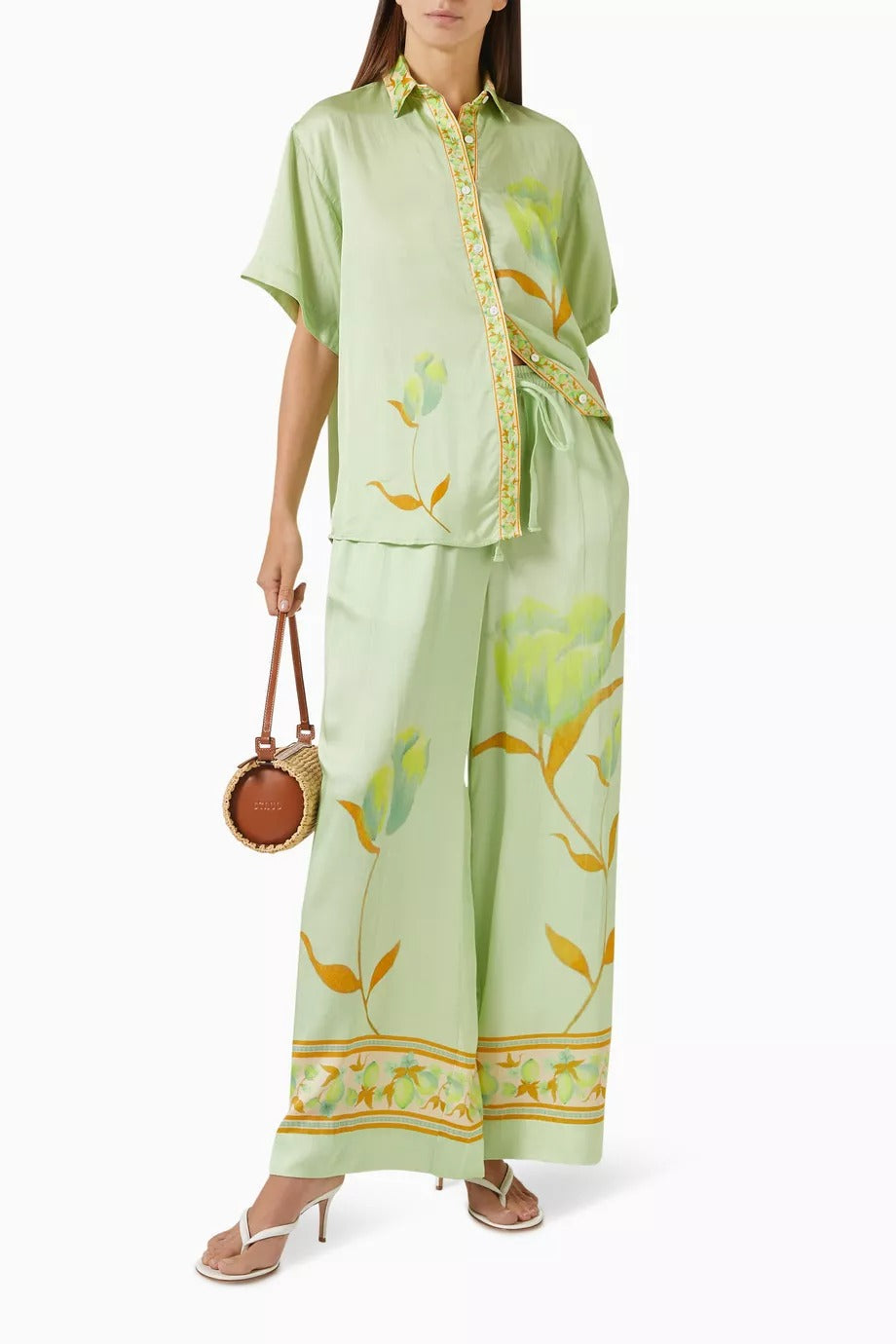 Cet ensemble fluide en satin offre une silhouette élégante et décontractée. La chemise à manches courtes associe confort et légèreté, tandis que le pantalon large à taille élastique assure une allure fluide et moderne. La poche nouée apporte une touche utilitaire chic à ce look parfait pour les journées estivales ou les soirées décontractées.