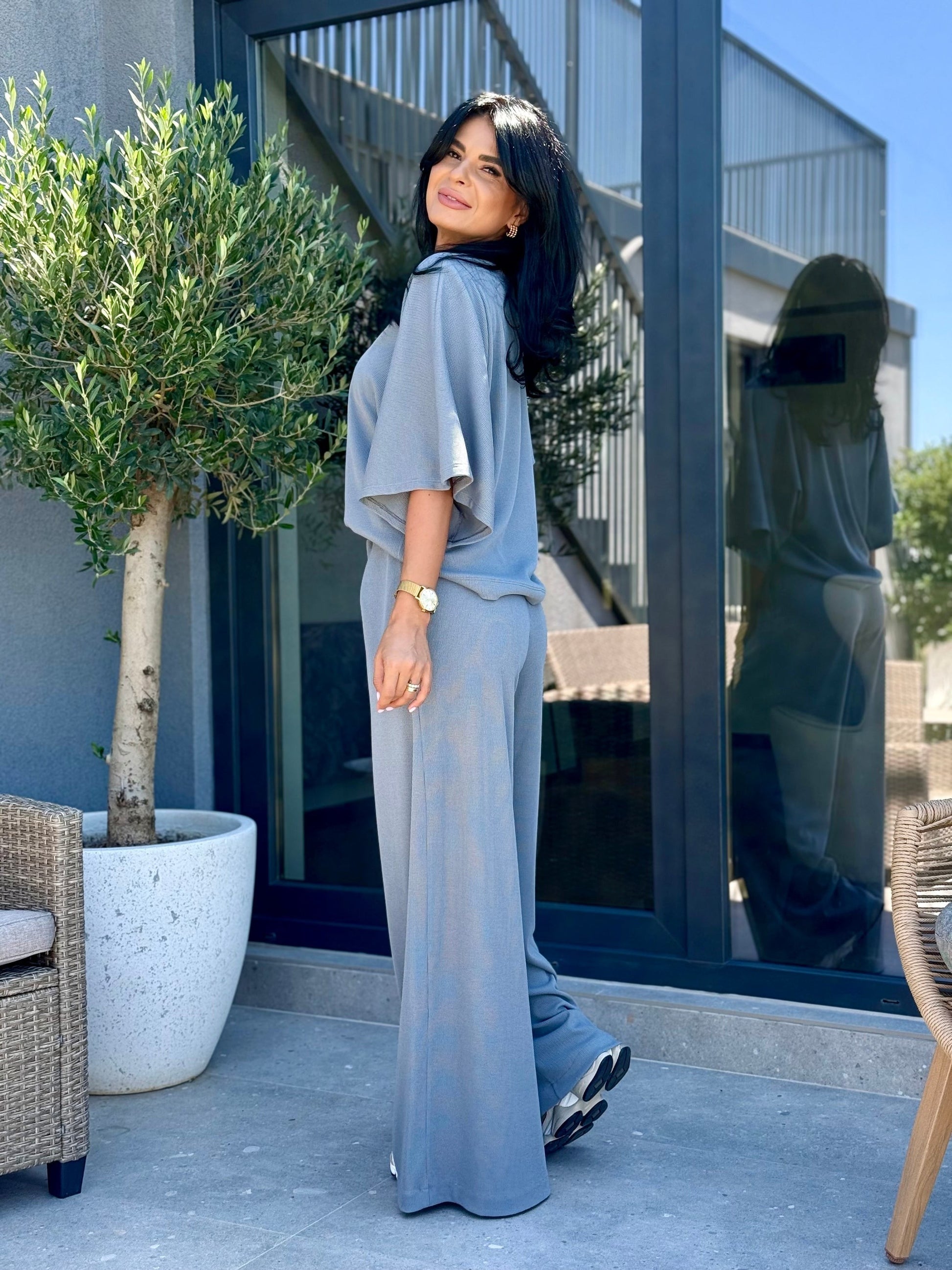 Cet ensemble léger et décontracté pour femme allie confort et style pour un usage quotidien. Composé d’un haut fluide et d’un pantalon assorti à coupe ample, il est confectionné dans un tissu respirant idéal pour les journées douces. Sa coupe décontractée assure une liberté de mouvement optimale tout en conservant une allure élégante.