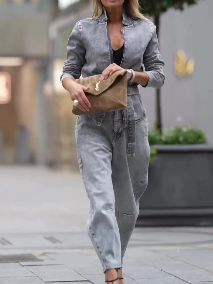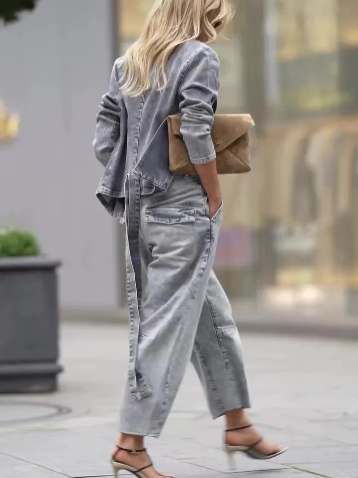 Ensemble veste légère et pantalon taille haute en denim