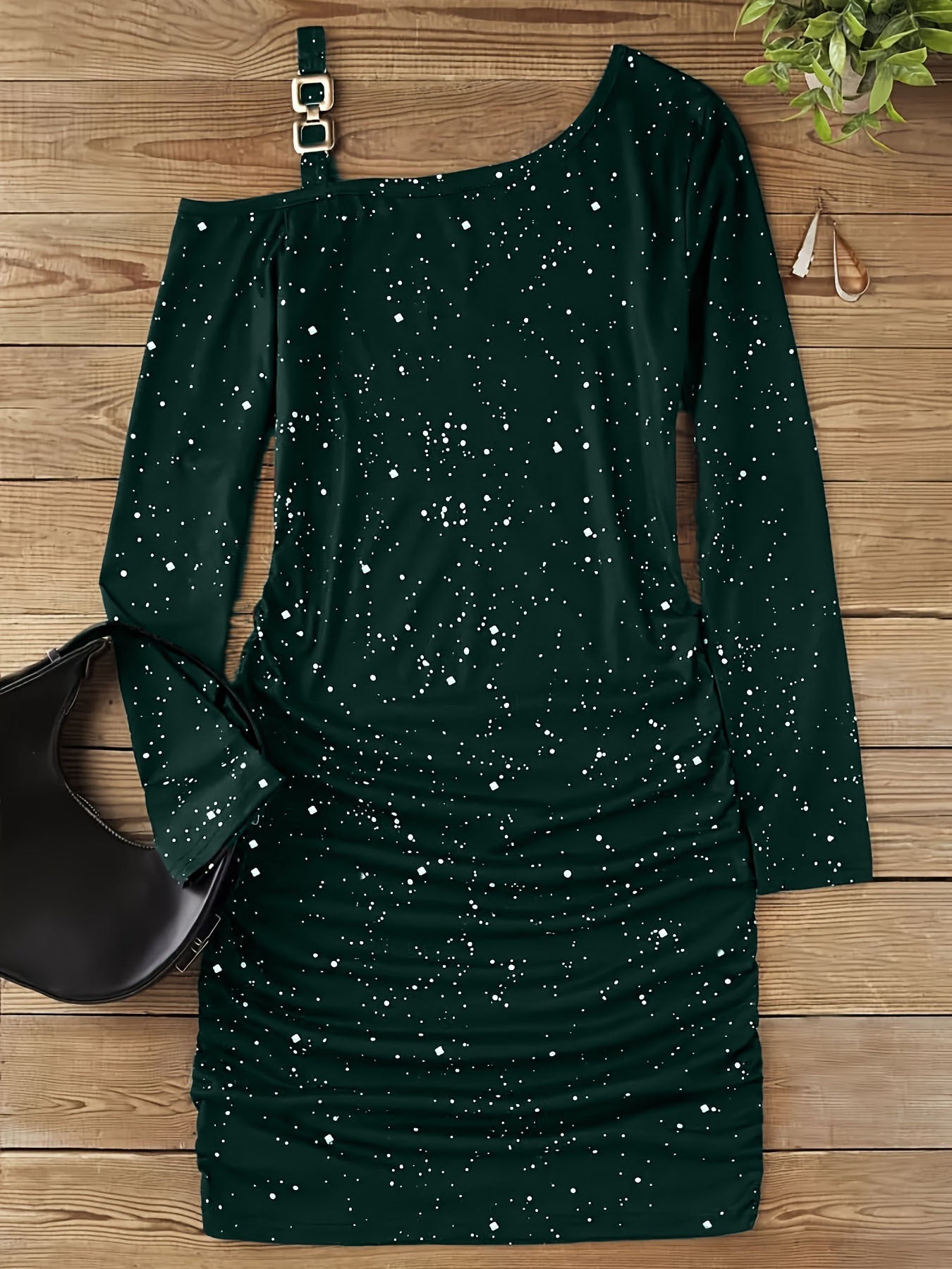 Entièrement brodée de sequins unis, cette robe capte la lumière à chaque mouvement pour un effet scintillant à couper le souffle — que ce soit sur une piste de danse ou lors d’un dîner chic.