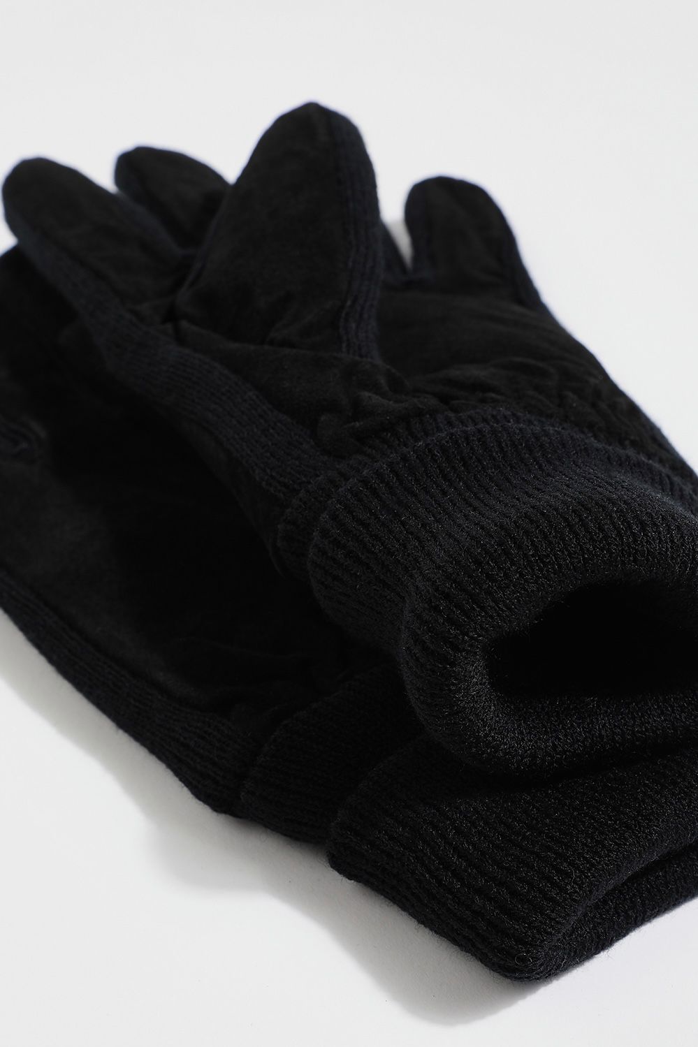 - Réalisés en tricot, paumes, dos et doigts recouverts de cuir velours
