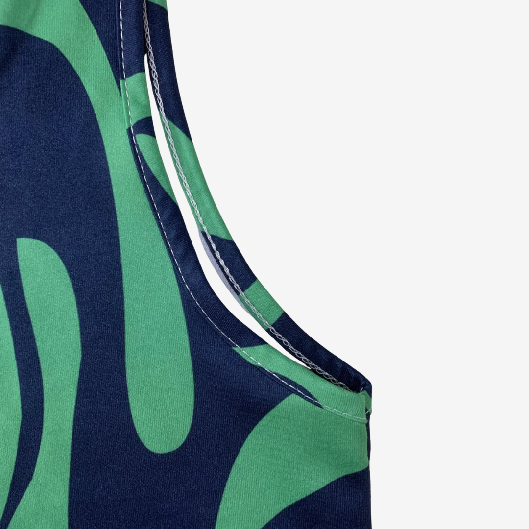 Imprimé abstrait accrocheur dans des tons verts et bleu marine audacieux
