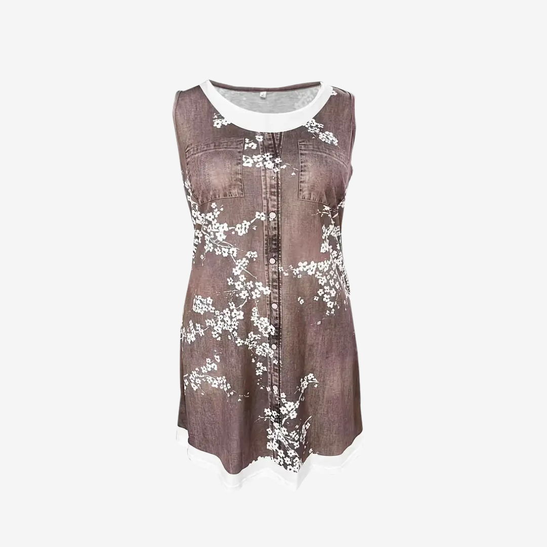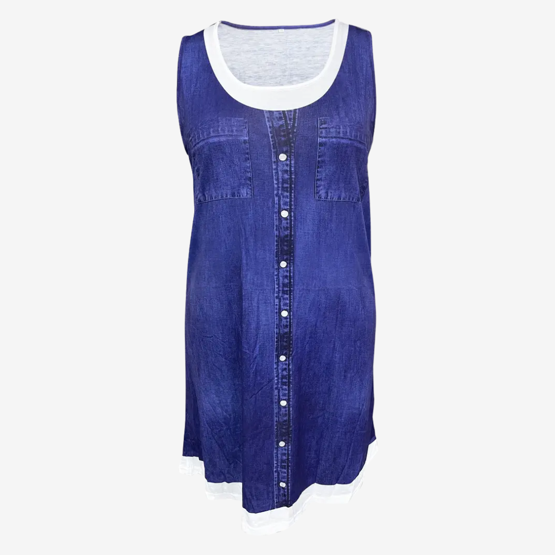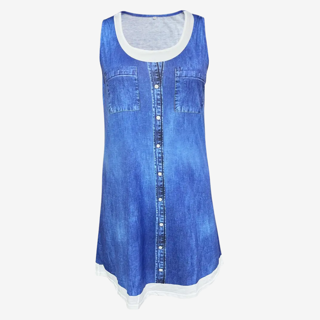 Adoptez une élégance décontractée avec la robe sans manches Gioenne™. Son effet superposé ludique allie le charme décontracté du denim à la douceur d'une sous-couche légère. Avec sa coupe trapèze décontractée, ses boutons et ses délicats détails floraux, cette robe incarne un esprit bohème chic, à la fois simple et élégant. Idéale pour les balades ensoleillées, les sorties décontractées ou les escapades du week-end, Gioenne™ est l'essentiel polyvalent de l'été que votre garde-robe attendait.