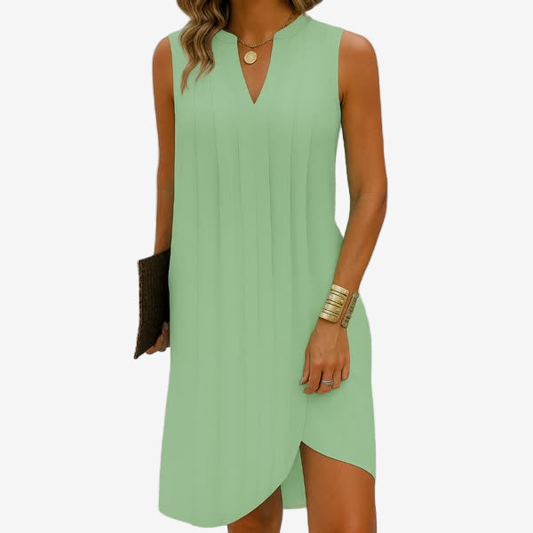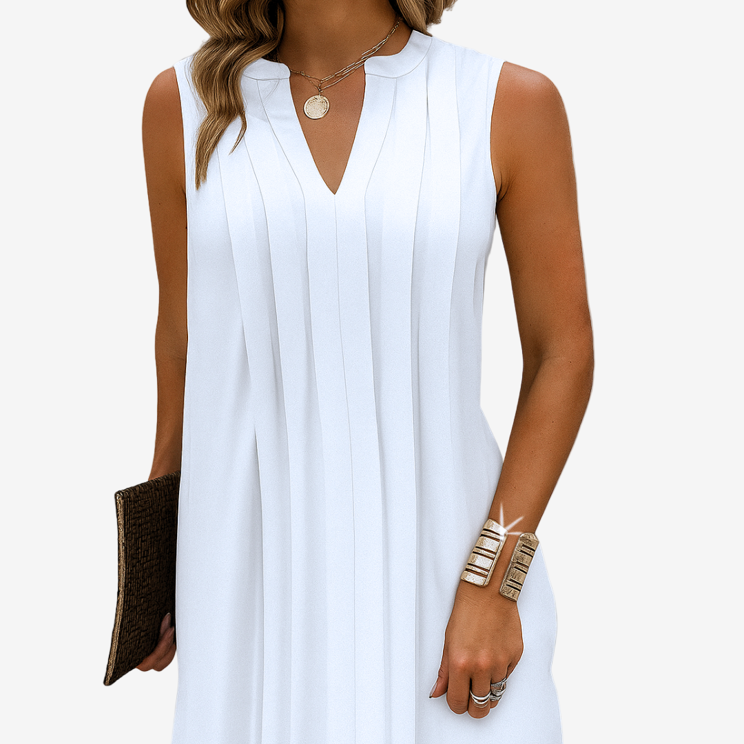 Adoptez une élégance intemporelle avec la robe trapèze sans manches Fauisse™. Confectionnée dans un tissu léger et fluide, avec un décolleté en V flatteur, cette robe allie confort et sophistication. Conçue pour épouser parfaitement le corps, elle se déplace avec grâce tout en vous gardant au frais et chic toute la journée. Portée avec des sandales pour une sortie décontractée ou avec des talons et des accessoires pour une tenue plus habillée en soirée, Fauisse™ s'adapte à toutes les occasions.