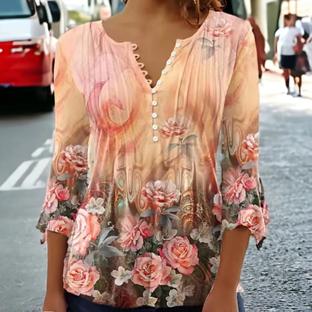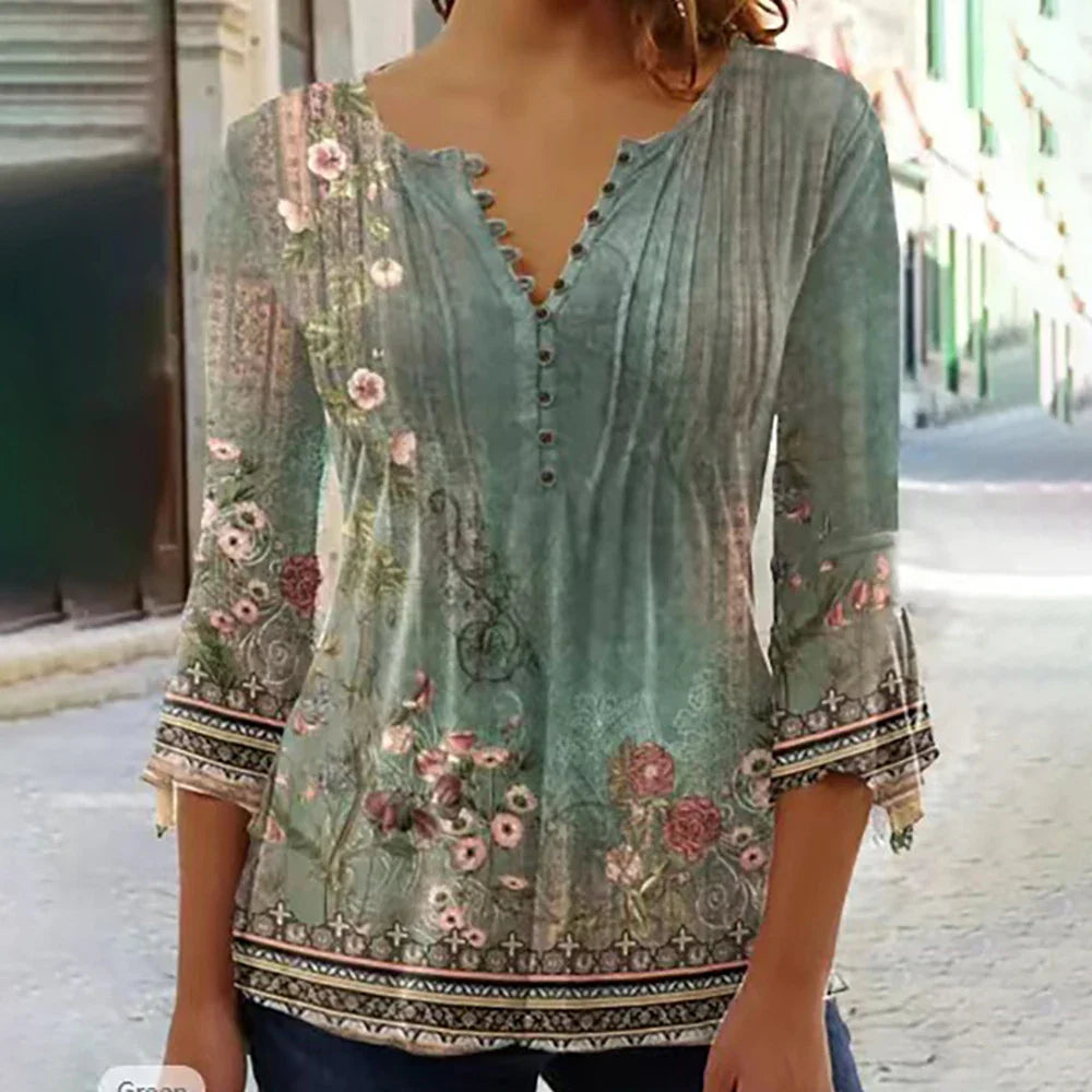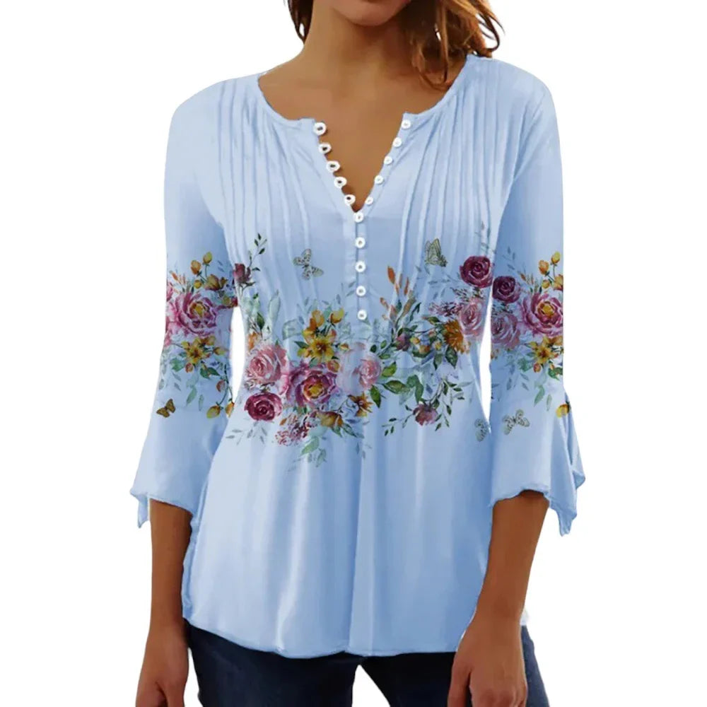 Rehaussez votre garde-robe du printemps et de l'été avec cette élégante blouse Sophie Paris® à col en V, parfaite pour le bureau et les environnements décontractés.