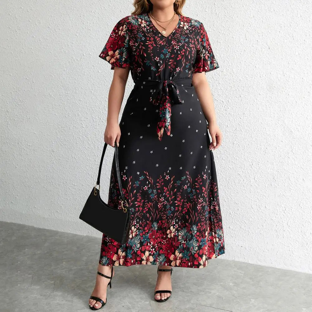 Entrez dans l'élégance avec cette superbe robe longue florale Sophie Paris®. Parfaite pour toutes les occasions, cette robe présente un décolleté en V flatteur et des manches micro-évasées.