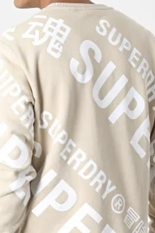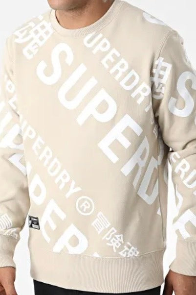 • Sweat crewneck UNISEXE beige/écru, tendance avec motif Superdry imprimé all over