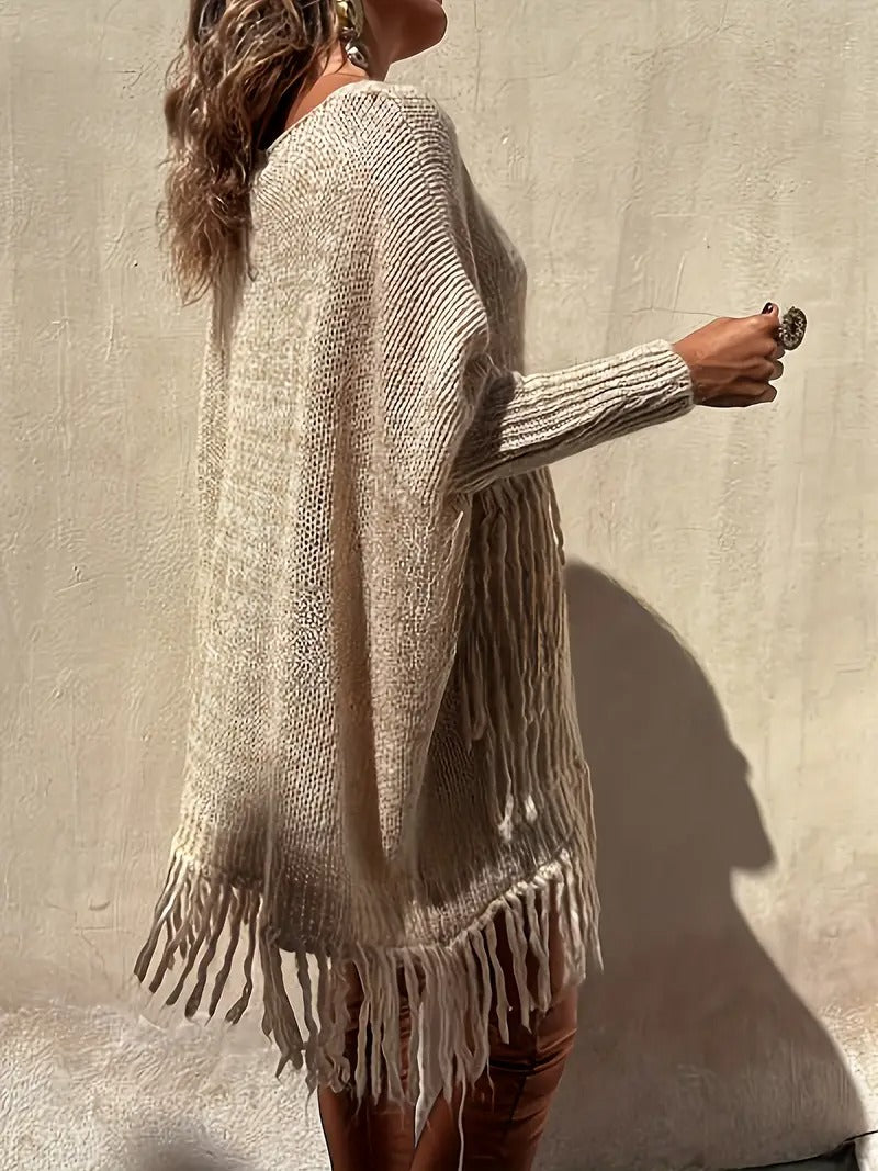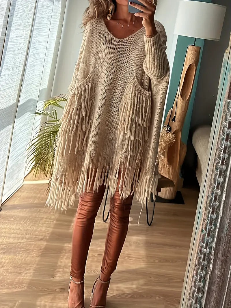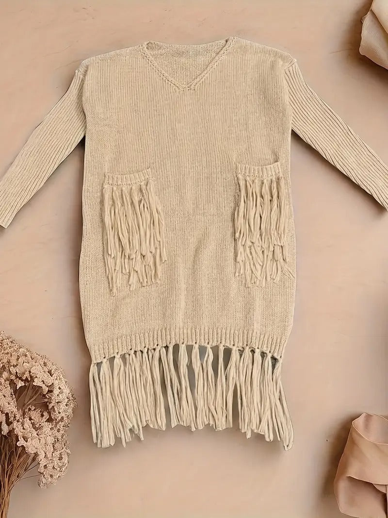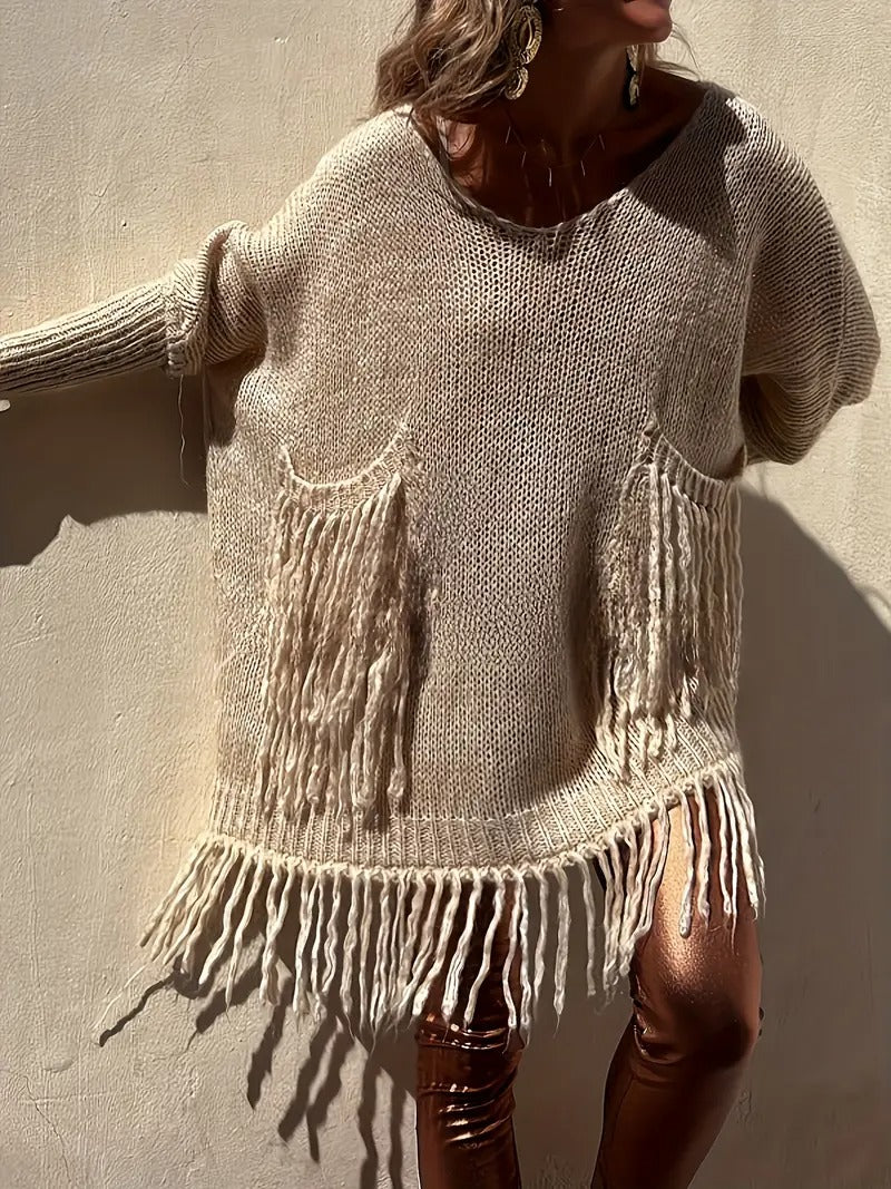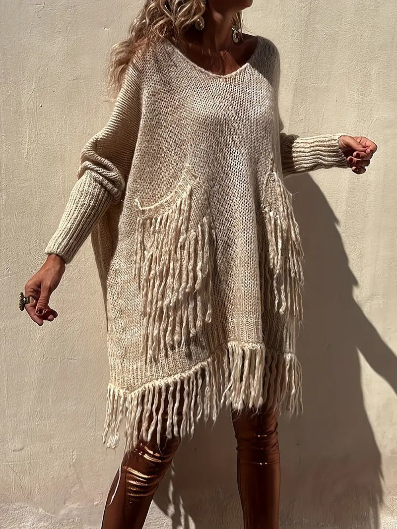 Alliant confort et style bohème, cette robe pull séduit par ses franges délicates et son design vintage. Sa coupe fluide et décontractée offre une silhouette féminine tout en restant confortable, idéale pour les journées fraîches d’automne ou d’hiver. Parfaite pour un look casual chic ou pour ajouter une touche bohème à vos tenues.