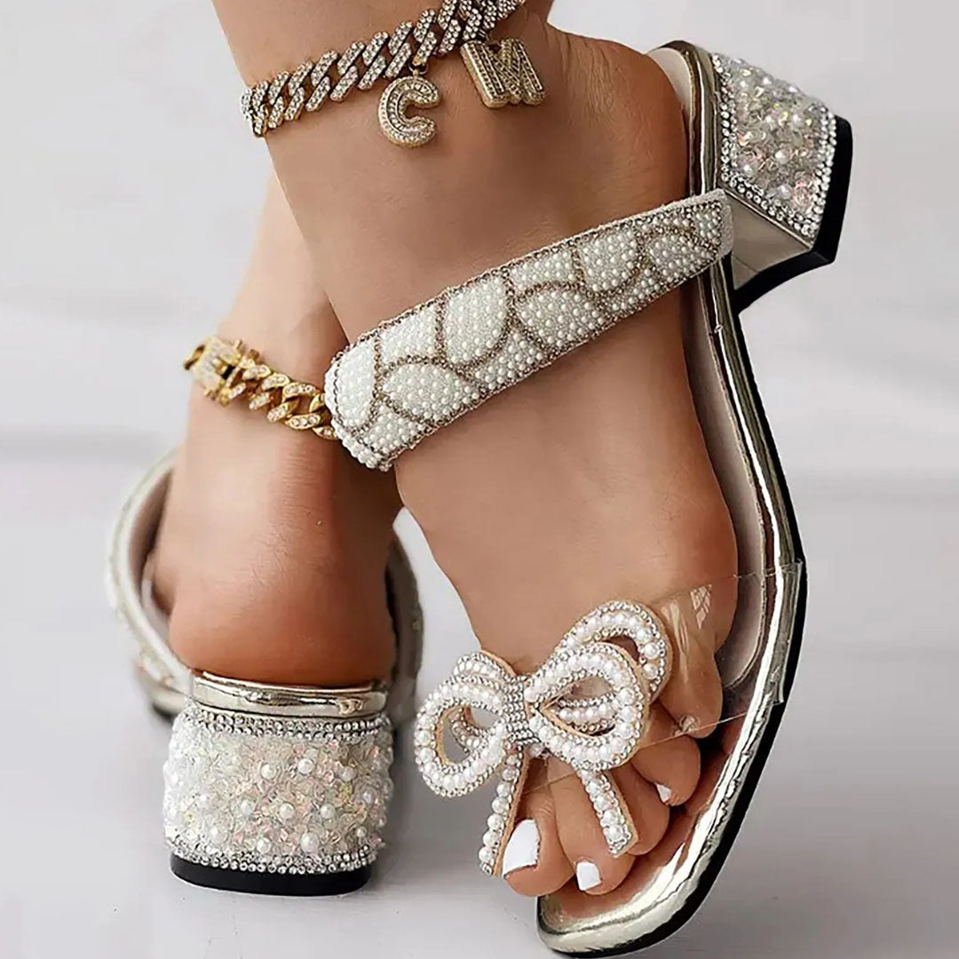 Un nœud perlé scintillant rencontre une bride de cheville brodée de vigne, remplie de perles miniatures embellies à la main et de microcristaux incrustés qui scintillent.