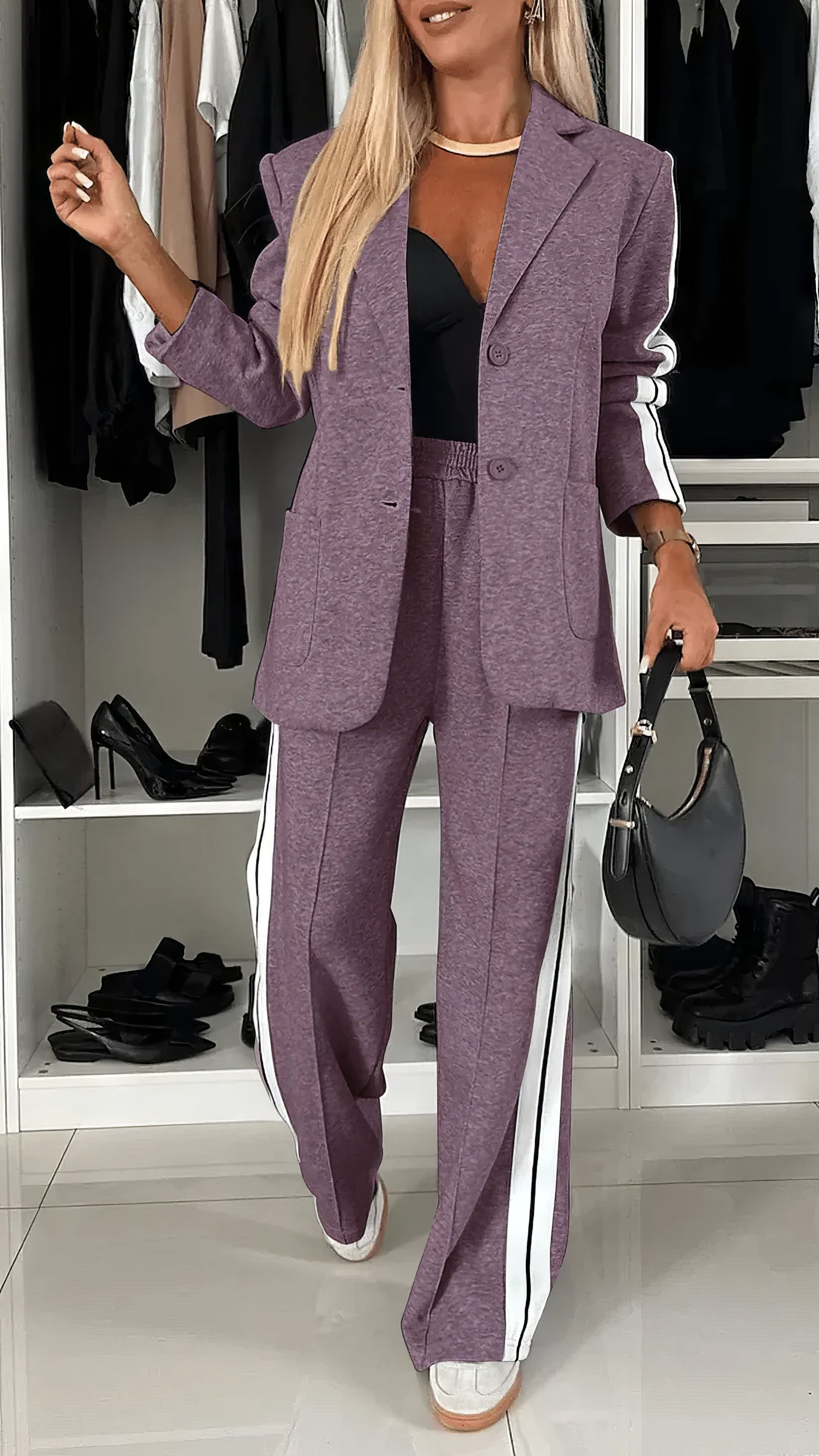 Découvrez le charme de l'ensemble Serena ! Ce set deux pièces, composé d'un blazer structuré et d'un pantalon fluide, est l'équilibre parfait entre style et confort. Idéal pour toutes les heures de la journée, il vous accompagnera du bureau à un café entre amis, en vous offrant toujours une allure sophistiquée.