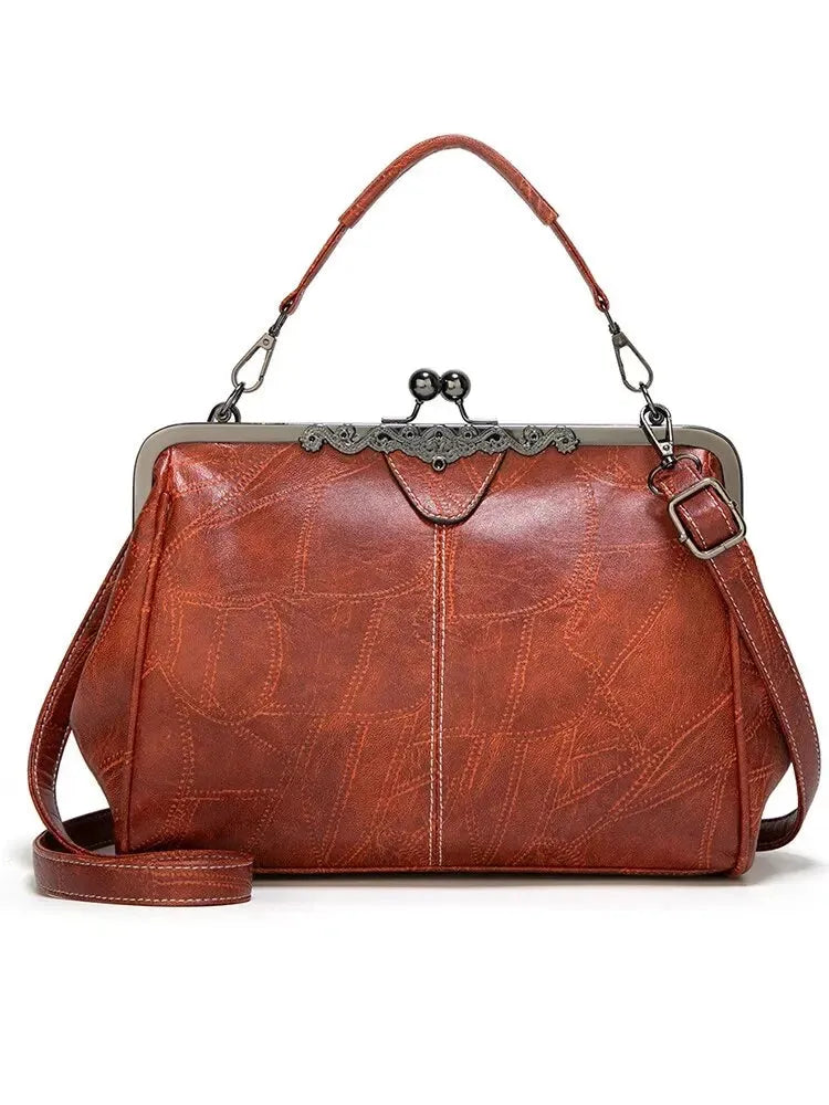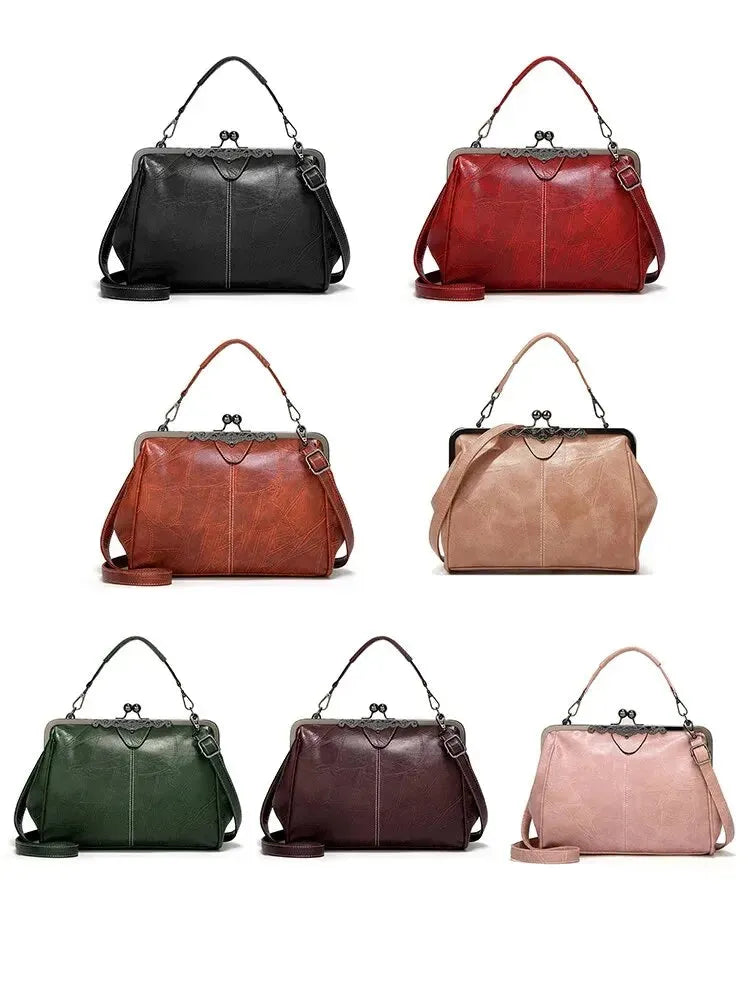 Sac à main en cuir PU de grande capacité de couleur unie, sac à bandoulière exquis et rétro pour femme Polyvalent, élégant et spacieux.