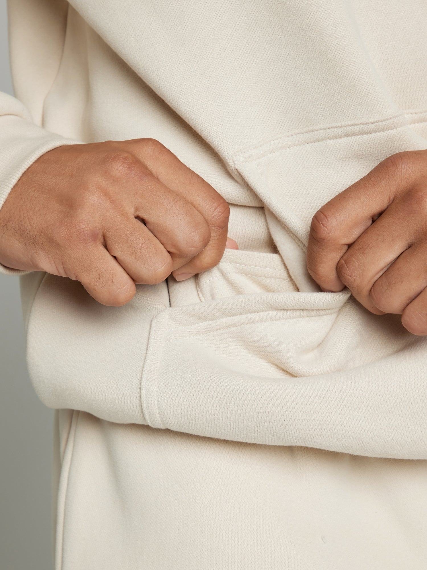 Enfilez un sweat à capuche fabriqué à partir d'un mélange de coton doux qui caresse votre peau. Sa capuche surdimensionnée et doublée double comprend un masque contour intégré—idéal pour des siestes reposantes en avion ou des moments calmes à la maison. Des poches zippées pratiques sur les manches gardent vos écouteurs à portée de main, tandis que des compartiments cachés à l'intérieur de la poche kangourou assurent la sécurité et l'organisation de vos essentiels comme votre passeport, votre pièce d'identité et votre argent liquide. Le tissu en molleton épais apporte chaleur et douceur pour un confort tout au long de la journée.