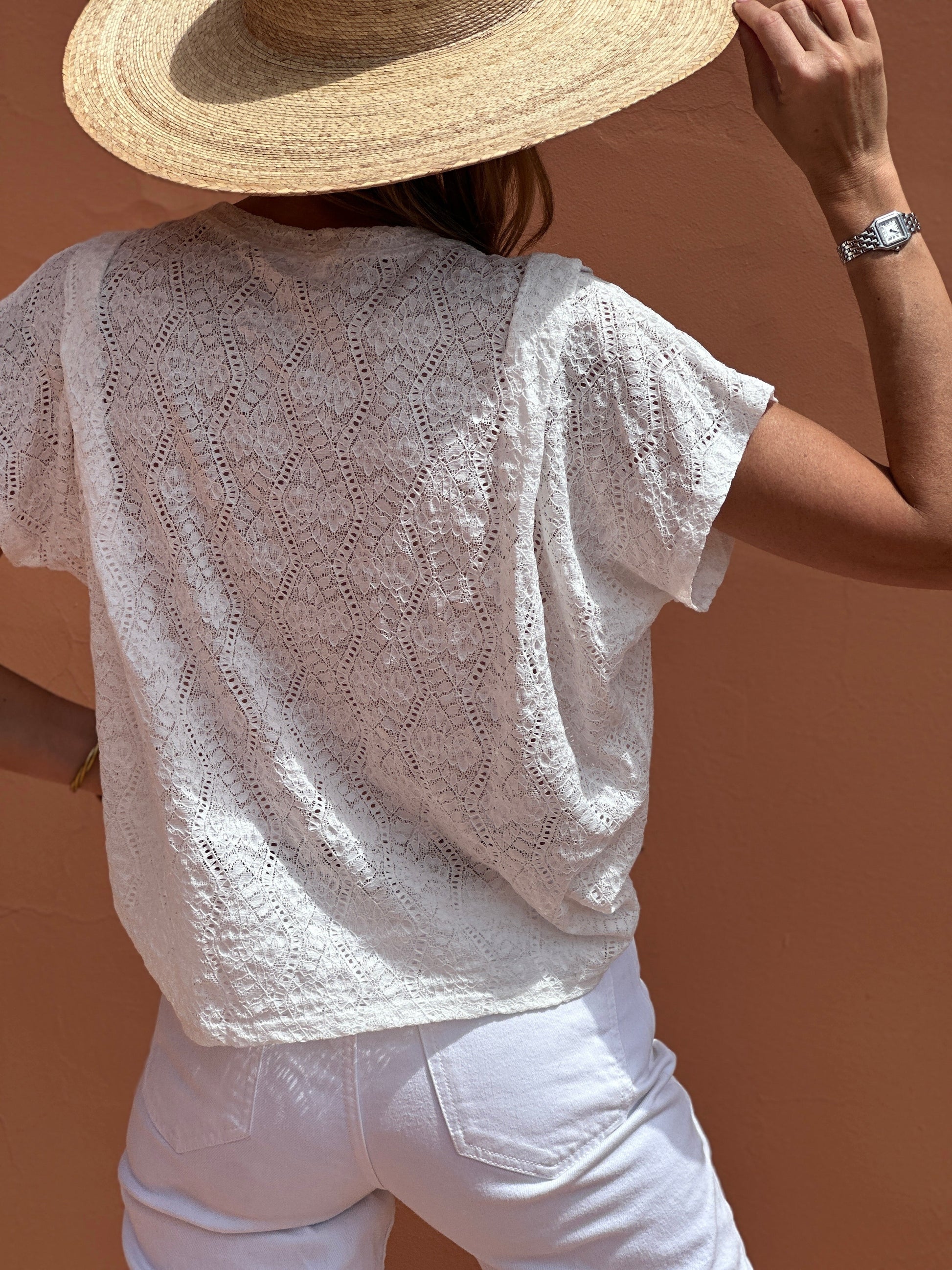 La collection Bertille est née de l’envie de créer une pièce aussi belle qu’une blouse en dentelle, mais avec le confort d’une maille. Pour l’été, on vous propose plusieurs déclinaisons, dont ce modèle t-shirt qu’on adore déjà !