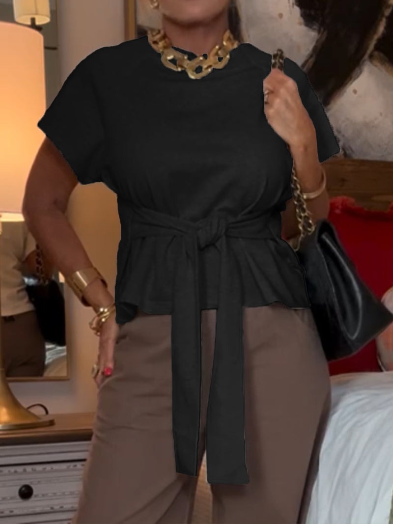 T-shirt décontracté en coton avec détail à lacets, offrant une touche moderne à une pièce classique. Sa coupe confortable et son tissu doux en font un incontournable pour un style simple mais travaillé.