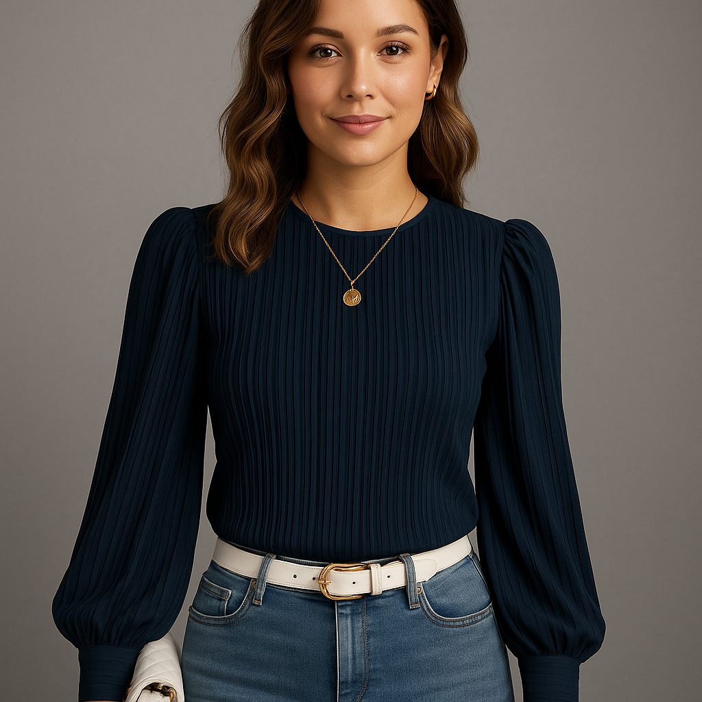 Texture élégante: Ce top présente des lignes verticales finement plissées qui créent une texture subtile mais sophistiquée, ajoutant de la profondeur à l'ensemble du design. Ce motif raffiné rehausse l'attrait visuel tout en conservant une esthétique minimaliste. Il est idéal pour les femmes qui apprécient les lignes épurées avec une touche de structure moderne.
