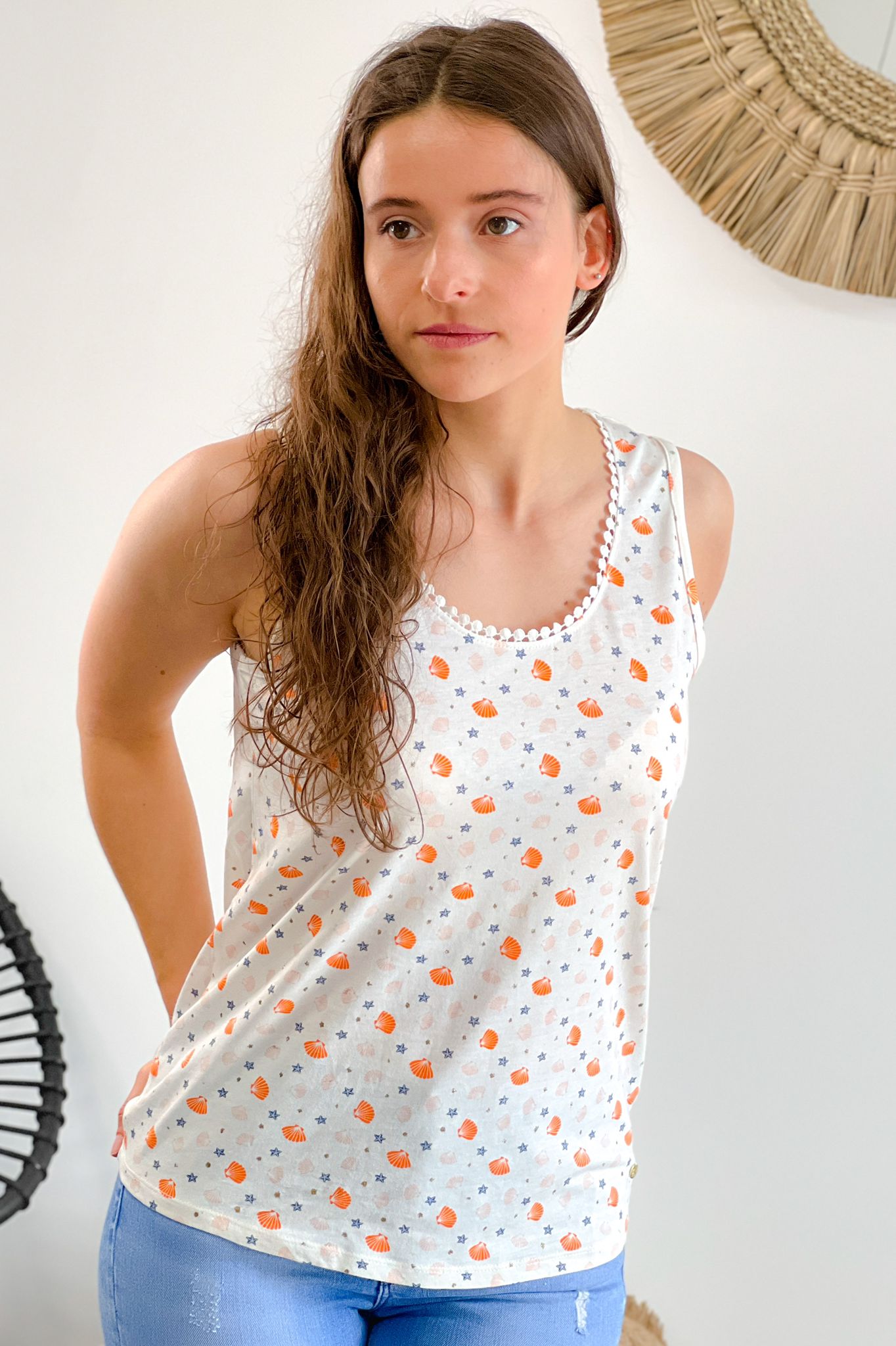 Tops écru et bleu marine coquillages C'EST BEAU LA VIE
