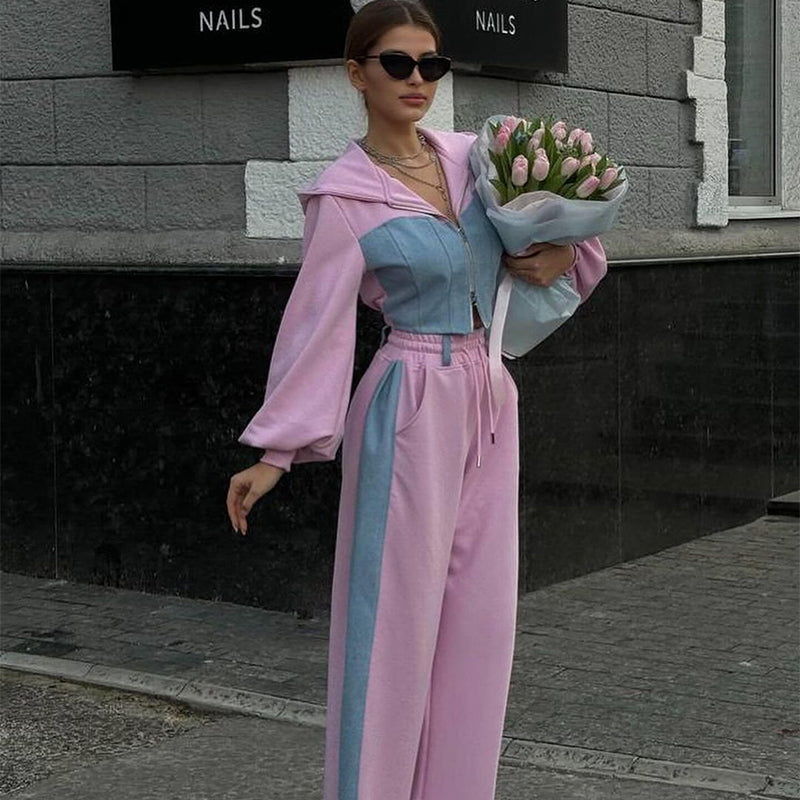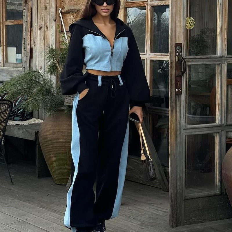 Ensemble 2 pièces haut patchwork tendance et pantalon ample