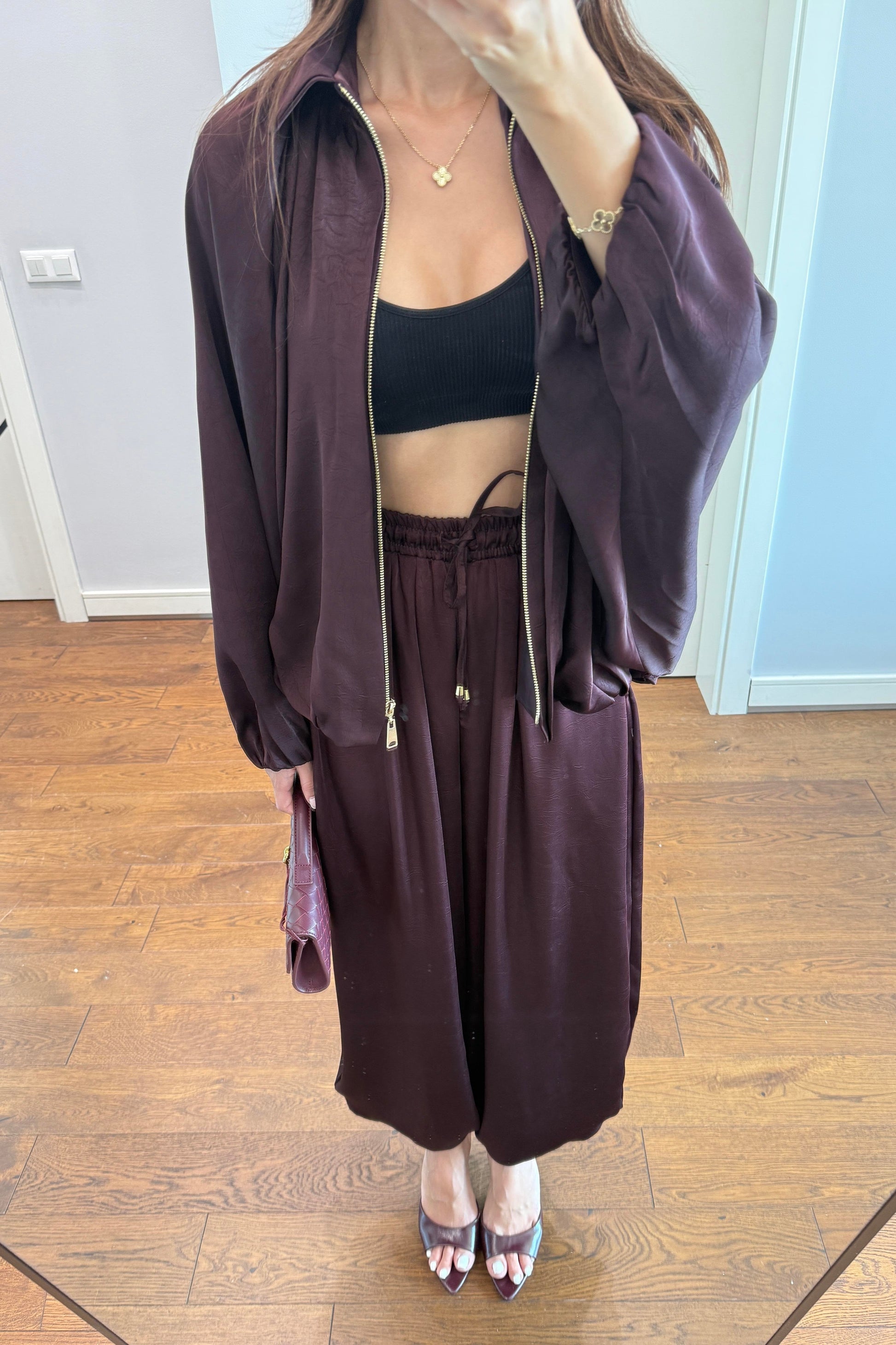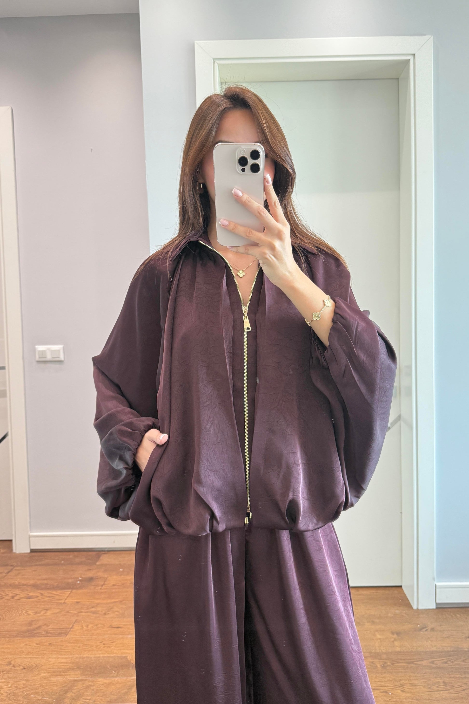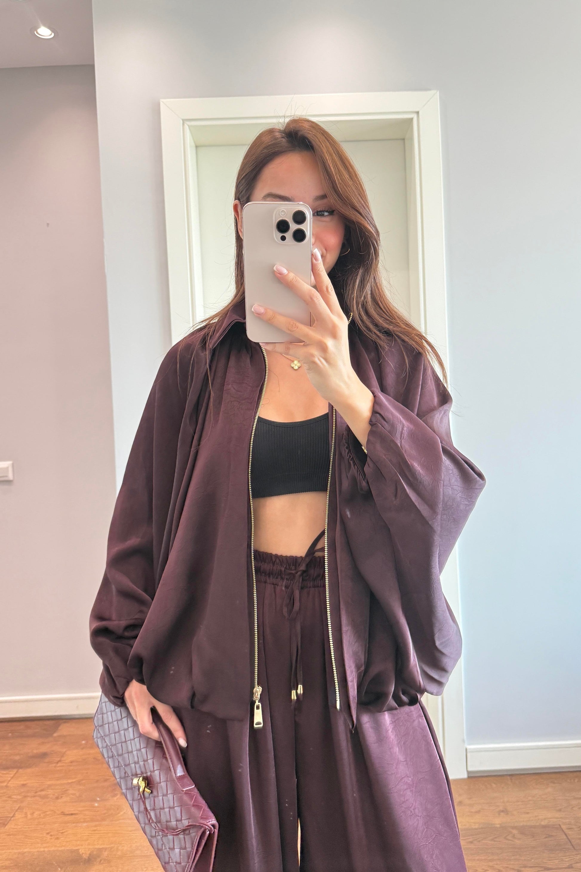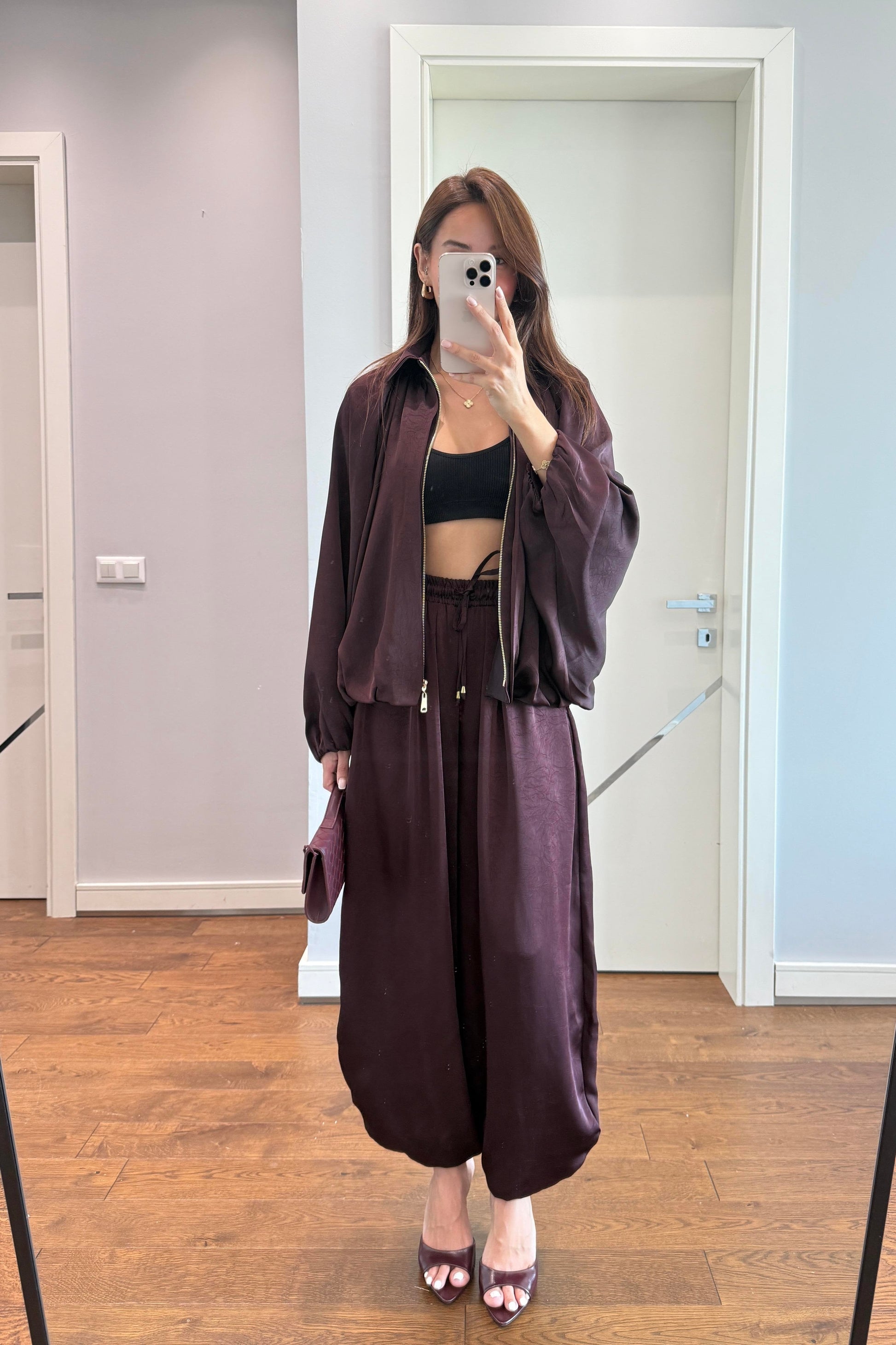Cet ensemble veste bomber en satin et pantalon associe allure sportive et élégance moderne. Léger, doux et brillant, il apporte une touche tendance à vos tenues, que ce soit pour une sortie en ville ou un événement casual-chic. Un look affirmé qui allie confort et style.