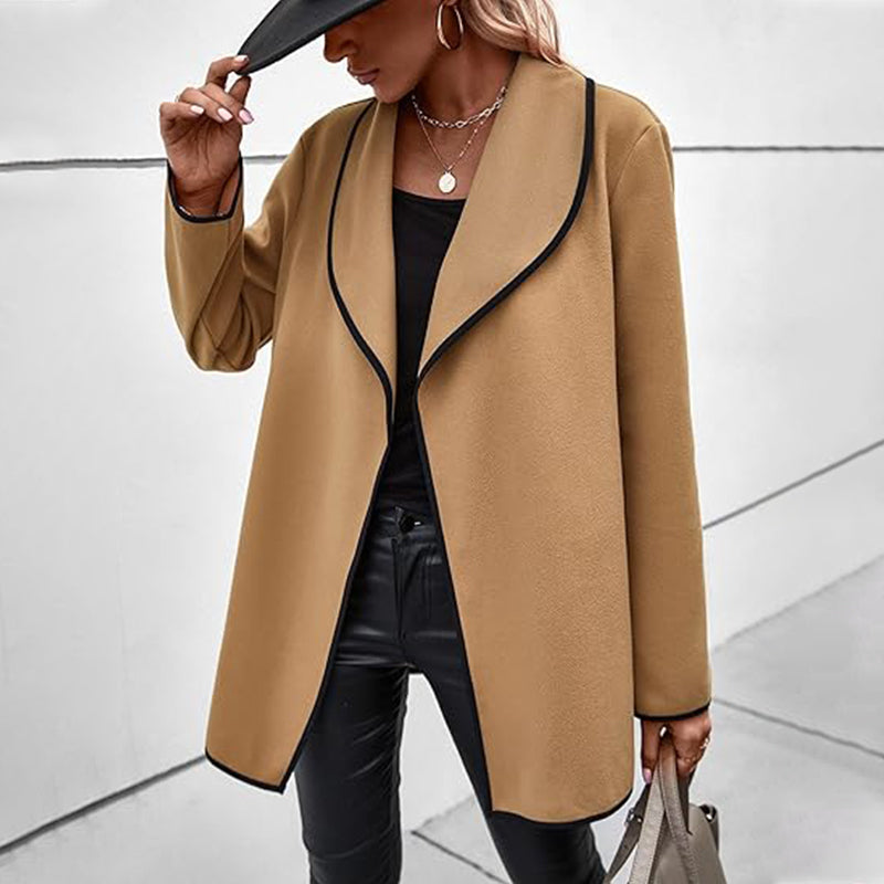 Notre veste en laine décontractée à manches longues pour femme est l'équilibre parfait entre chaleur, polyvalence et style. Confectionnée dans un tissu chaud et coupe-vent, elle est idéale pour diverses occasions et devient une pièce incontournable pour les mois froids.