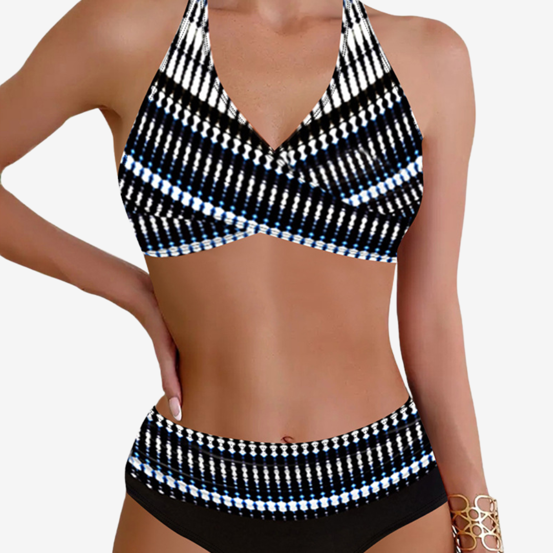 L'ensemble bikini Ysée ™ allie élégance rétro et modernité. Doté d'un bas taille haute flatteur et d'un haut cache-cœur offrant un bon maintien, cet ensemble est parfait pour celles qui recherchent assurance et élégance à la plage ou au bord de la piscine. Confectionné dans un tissu respirant et extensible, il épouse vos courbes et sèche rapidement, ce qui en fait un incontournable de l'été.