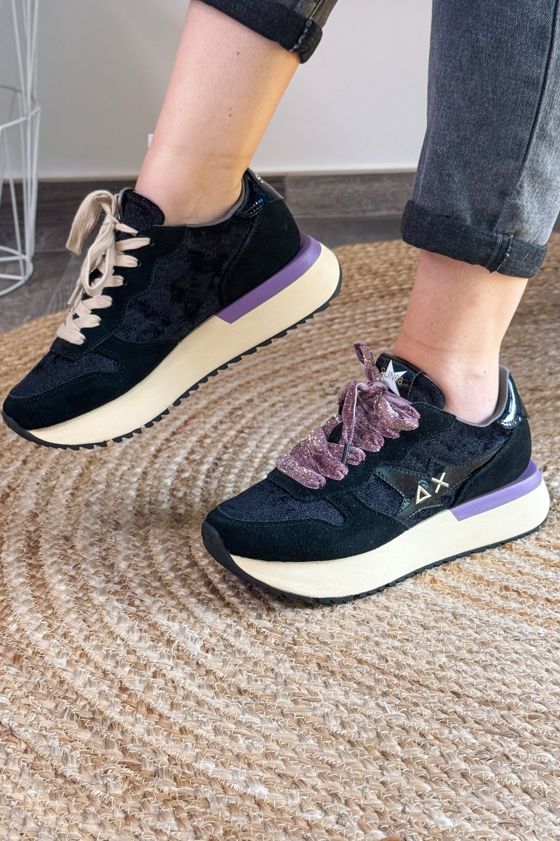 - Vendues avec 2 paires de lacets : un beige et un parme doré velours pailleté