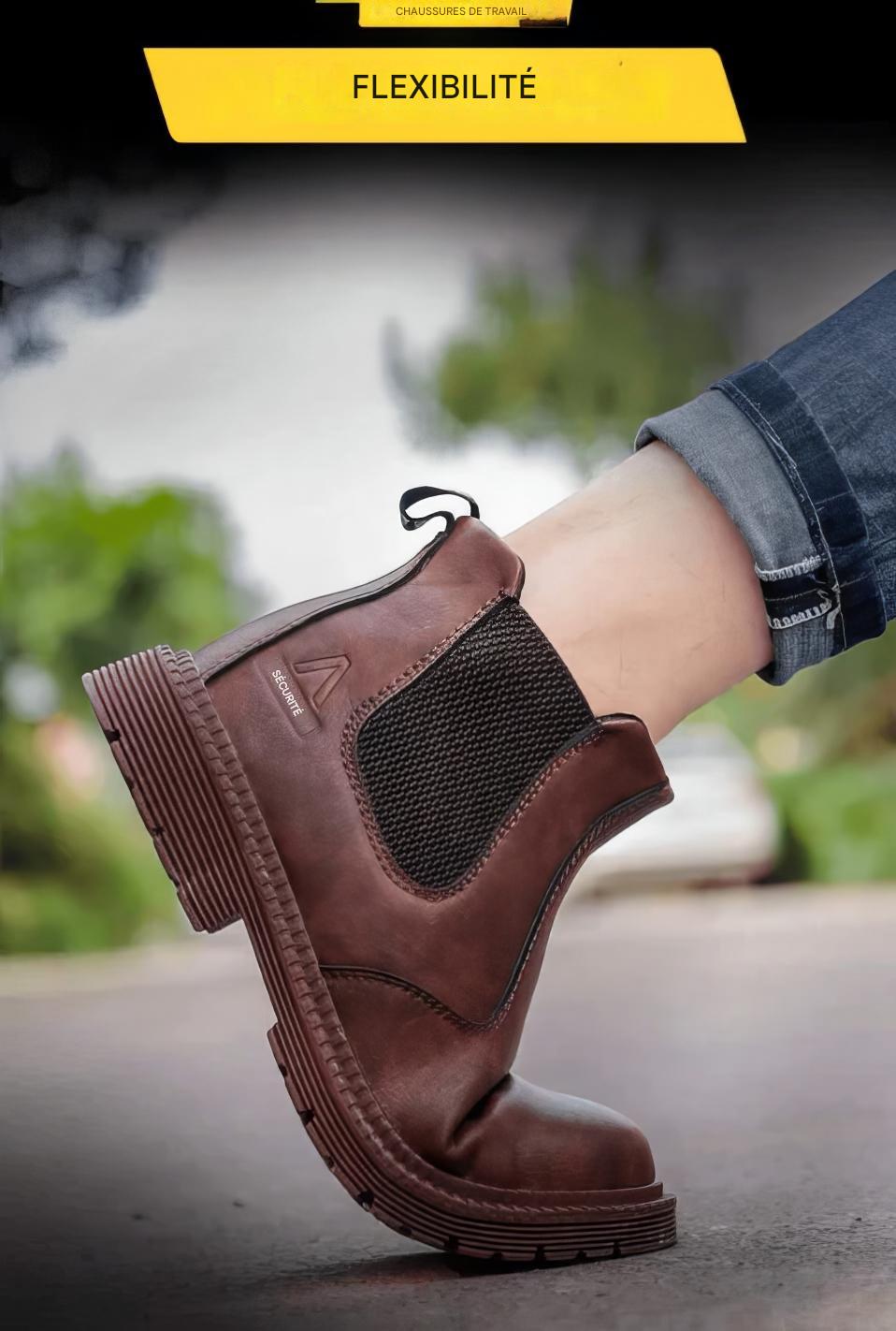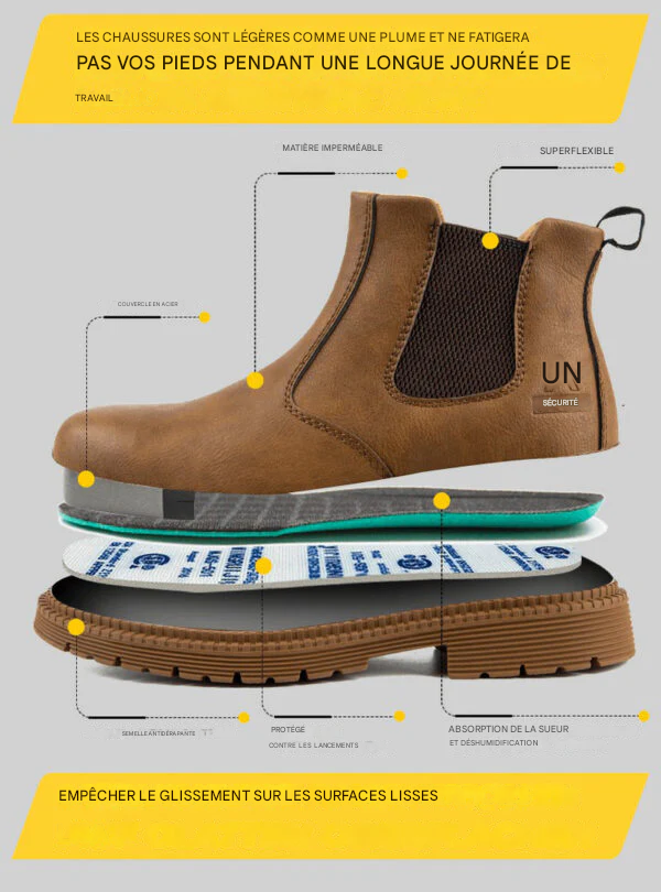 Ces chaussures de sécurité sont conçues pour offrir un confort optimal sans compromettre la protection. Bien que fabriquées avec des matériaux imperméables, elles restent respirantes grâce à des panneaux latéraux en maille, garantissant que vos pieds restent au frais même après de longues heures de travail.