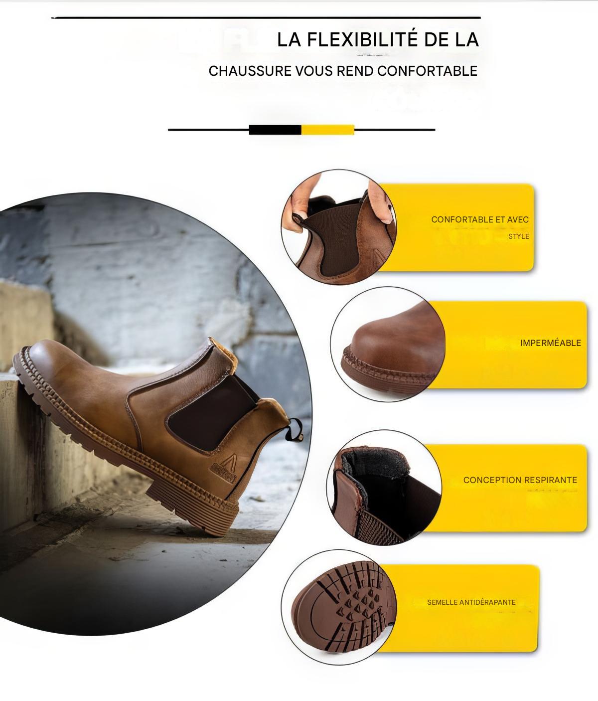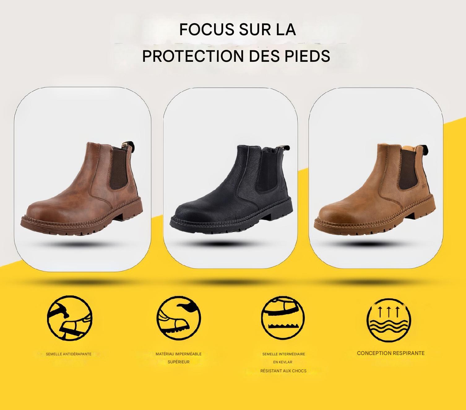 Nos chaussures de sécurité Invicto sont des bottes montantes qui ressemblent à des bottes en cuir classiques. Cependant, elles intègrent toutes les fonctionnalités nécessaires pour garantir votre sécurité tout en étant imperméables.